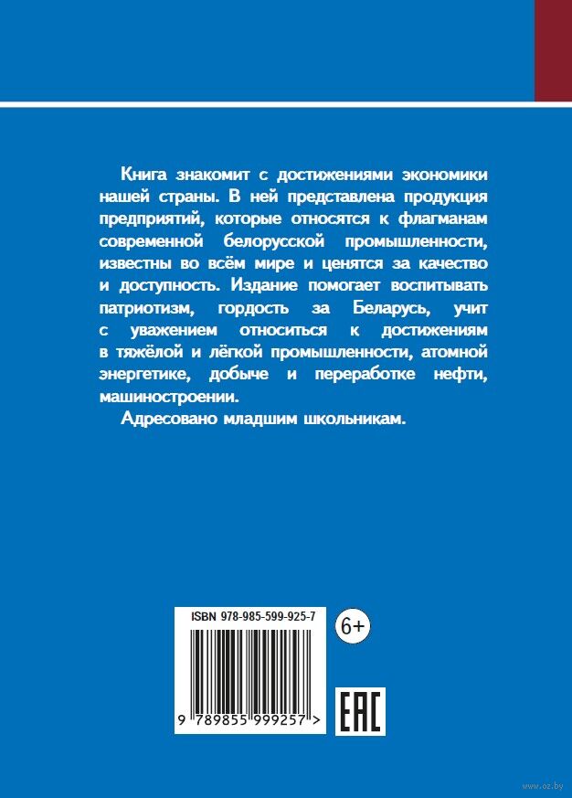 Книга знакомит с достижениями экономики нашей страны. В ней представлена продукция предприятий, которые относятся к флагманам современной белорусской промышленности, известны во всём мире и ценятся за качество и доступность. Издание помогает воспитывать патриотизм, гордость за Беларусь, учит с уважением относиться к достижениям в тяжёлой и лёгкой промышленности, атомной энергетике, добыче и переработке нефти, машиностроении.