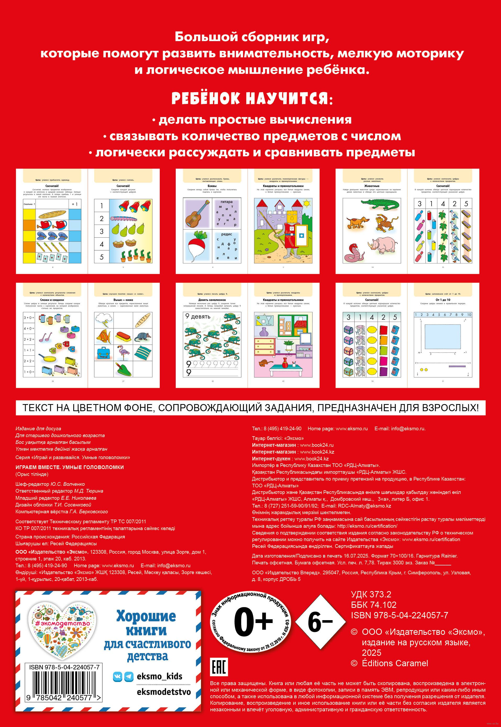 Проведите время с ребенком весело и познавательно! Перед вами – большой сборник развивающих игр для совместных занятий с ребенком возраста от 4 лет. Упражнения, включенные в сборник, направлены на развитие логического мышления, мелкой моторики и внимательности. Внутри вы найдете лабиринты, раскраски по номерам, игры на вычисление количества предметов и на понимание противоположных понятий, а также другие задания, которые малышу обязательно захочется пройти. Каждая игра сопровождается кратким описанием для родителей. Яркие цветные крупные иллюстрации, расположенные на каждой странице, привлекут внимание и заинтересуют ребенка.