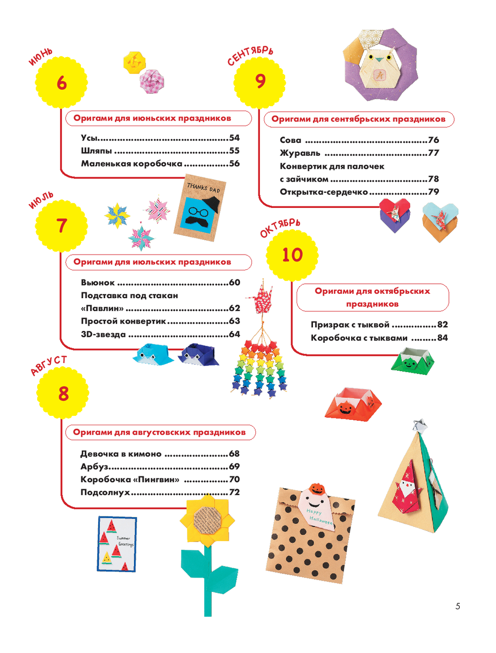 Ваш ребенок откроет волшебный мир оригами, в котором каждое время года приносит новые идеи для творчества! По пошаговым мастер-классам вы сложите из бумаги более 60 удивительных декораций и подарков, которые будут радовать каждый день. Все разделы посвящены 12 месяцам, каждый из которых добавит яркости семейным праздникам и поможет провести их весело, складывая оригами. Ваш ребенок научится складывать не только простые 2D-оригами, но и объемные и даже модульные фигуры! А если объединить несколько фигурок, вы получите уникальные венки со сказочными мотивами, забавными персонажами и сюжетами.