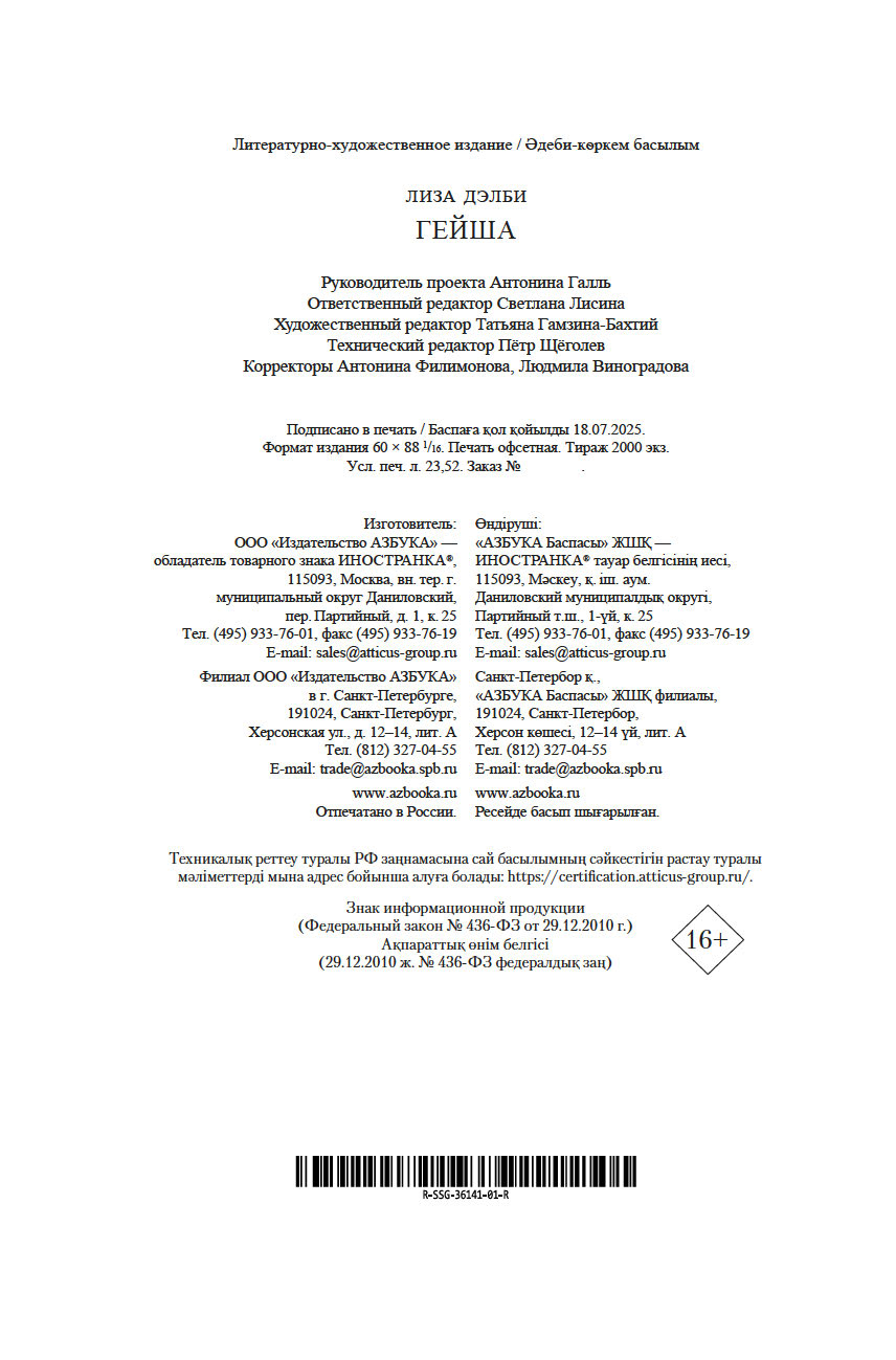 | Изготовитель | ООО "Издательство "Иностранка". 109017, РФ, г. Москва, ул. Пятницкая, 41 |