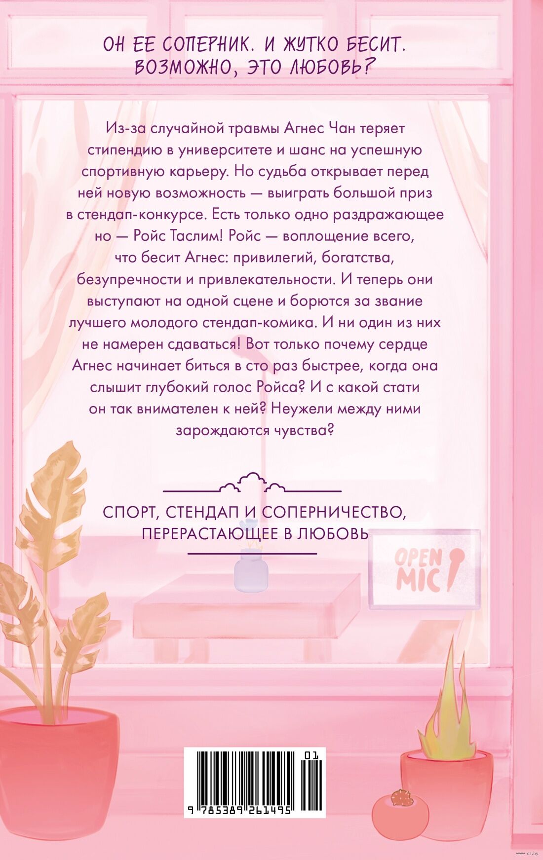 Из-за случайной травмы Агнес Чан теряет стипендию в университете и шанс на успешную спортивную карьеру. Но судьба открывает перед ней новую возможность – выиграть большой приз в стендап-конкурсе. Есть только одно раздражающее но – Ройс Таслим! Ройс – воплощение всего, что бесит Агнес: привилегий, богатства, безупречности и привлекательности. И теперь они выступают на одной сцене и борются за звание лучшего молодого стендап-комика. И ни один из них не намерен сдаваться! Вот только почему сердце Агнес начинает биться в сто раз быстрее, когда она слышит глубокий голос Ройса? И с какой стати он так внимателен к ней? Неужели между ними зарождаются чувства?