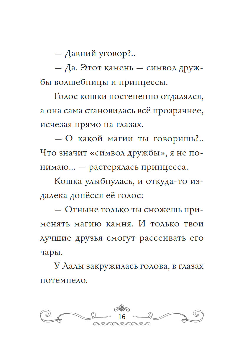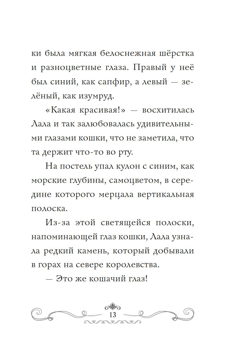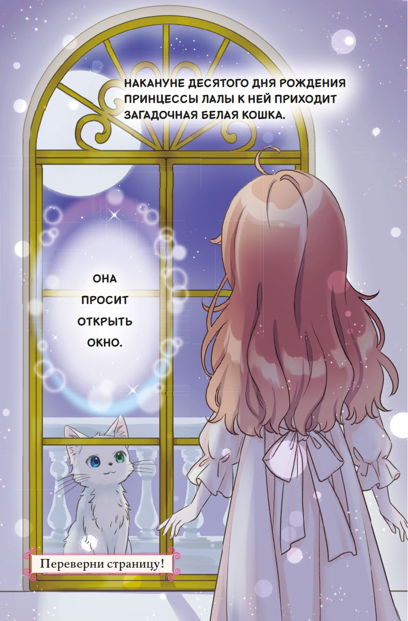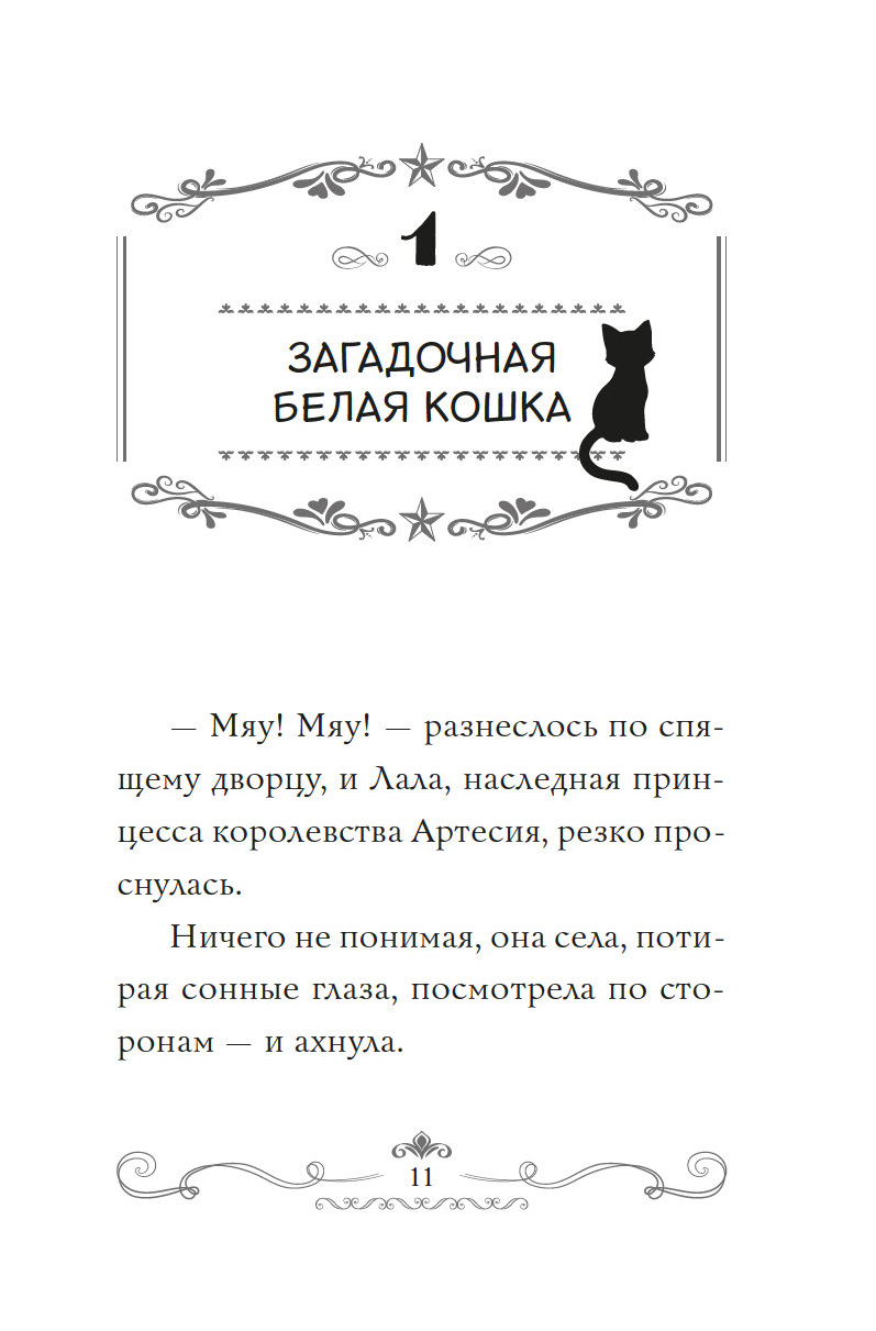 Накануне десятого дня рождения к принцессе Лале пришла загадочная белая кошка и подарила кулон с красивым камнем. Оказалось, в нём заключена магия! Принцесса превратилась в котёнка и сбежала из дворца исследовать королевство. Весь день она творила по-настоящему добрые дела – помогла мальчику найти пропавшую сестру, подсказала королевской страже, где украденные драгоценности. А вечером даже успела на салют в замке в честь своего праздника! Но что, если белая кошка не так проста? И как тайна кулона связана с семьёй Лалы?
