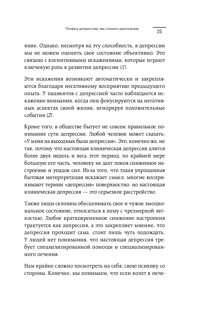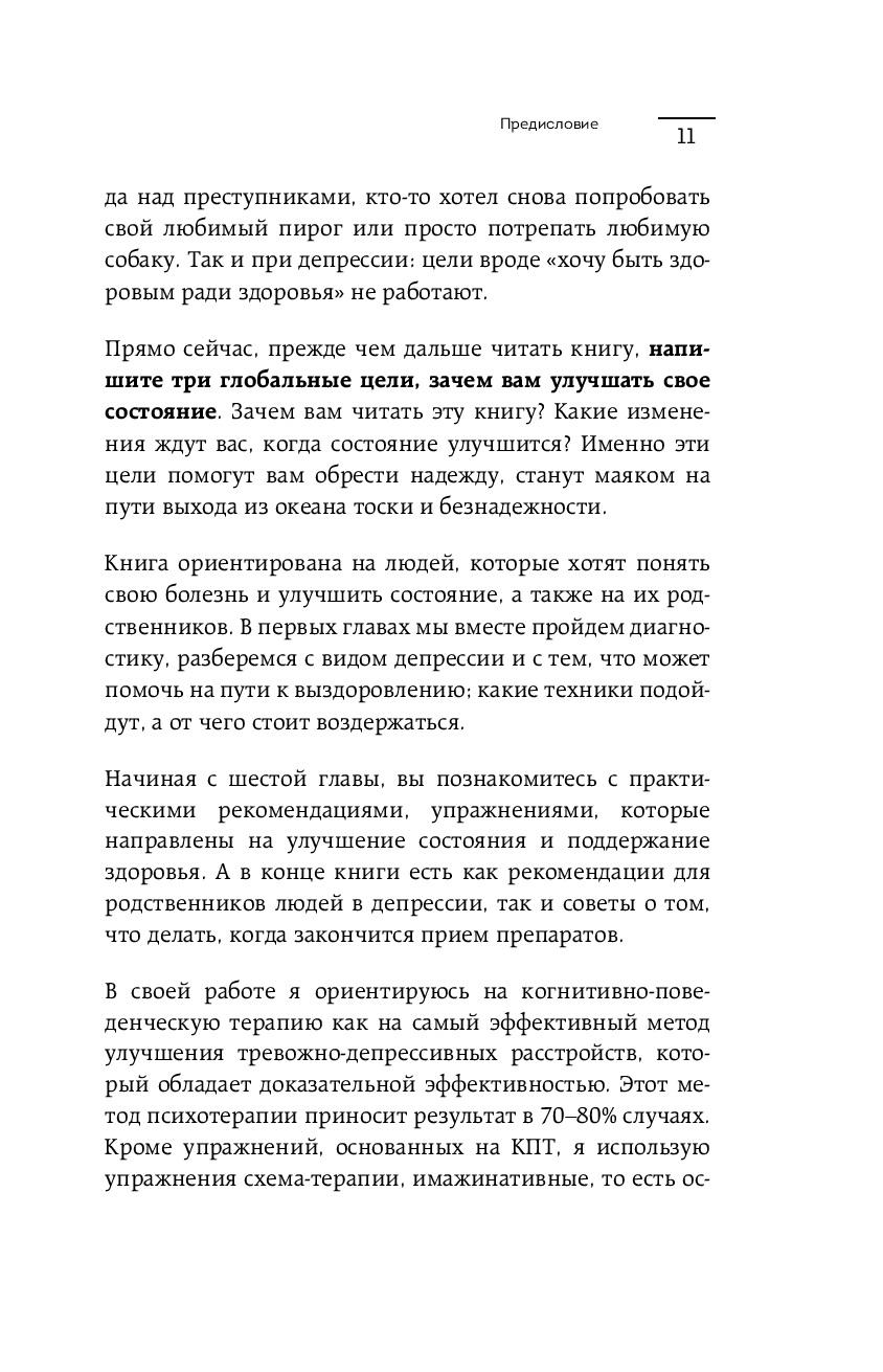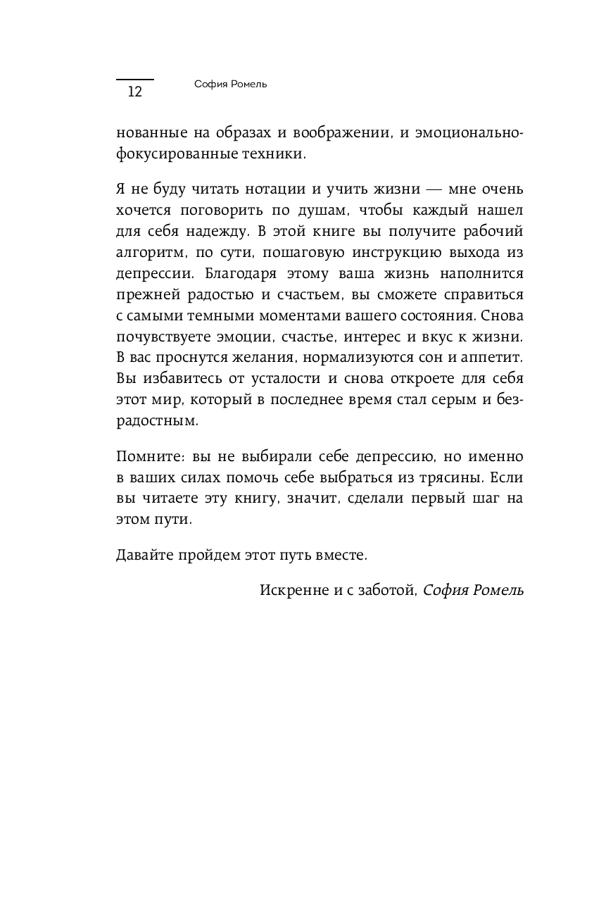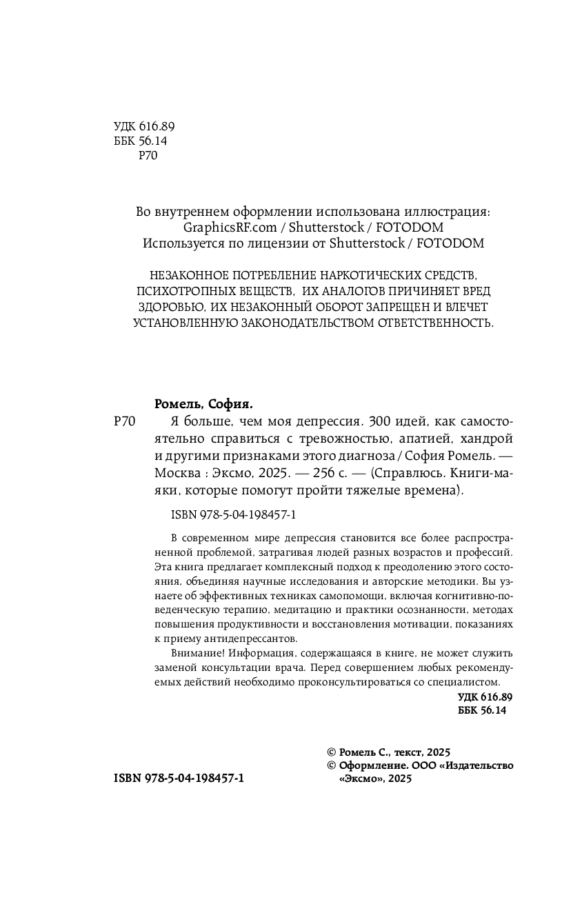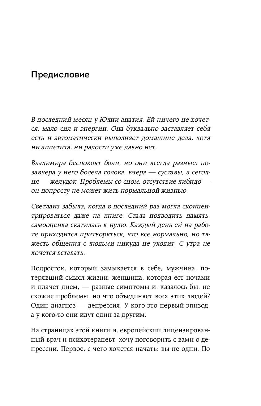 В современном мире депрессия становится все более распространенной проблемой, затрагивая людей разных возрастов и профессий. Эта книга предлагает комплексный подход к преодолению этого состояния, объединяя научные исследования и авторские методики. Вы узнаете об эффективных техниках самопомощи, включая когнитивно-поведенческую терапию, медитацию и практики осознанности, методах повышения продуктивности и восстановления мотивации, показаниях к приему антидепрессантов.