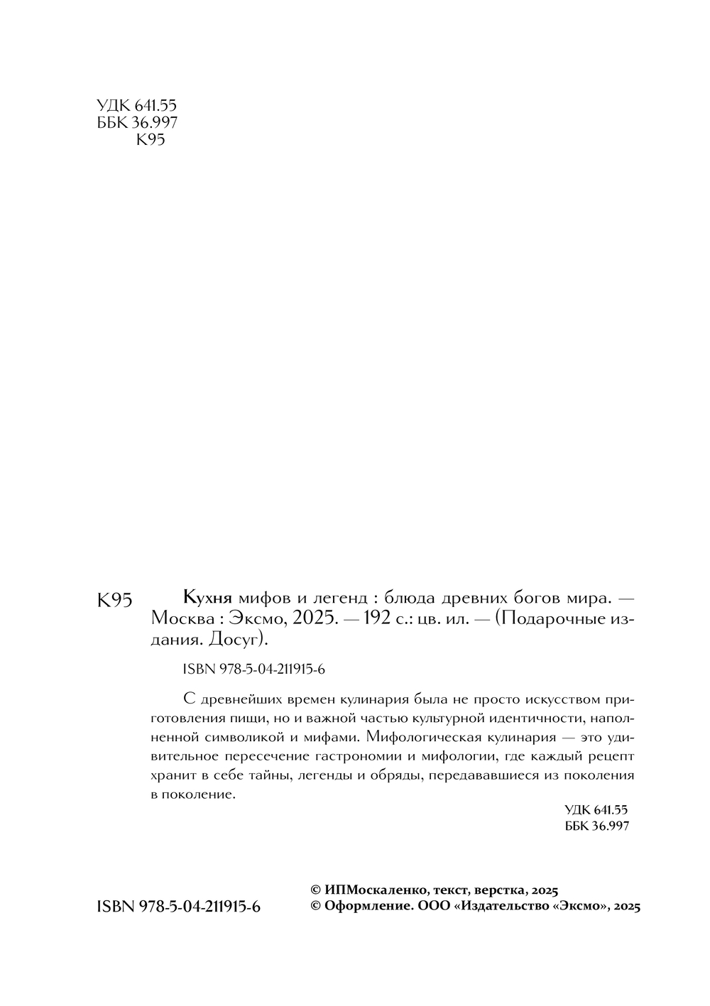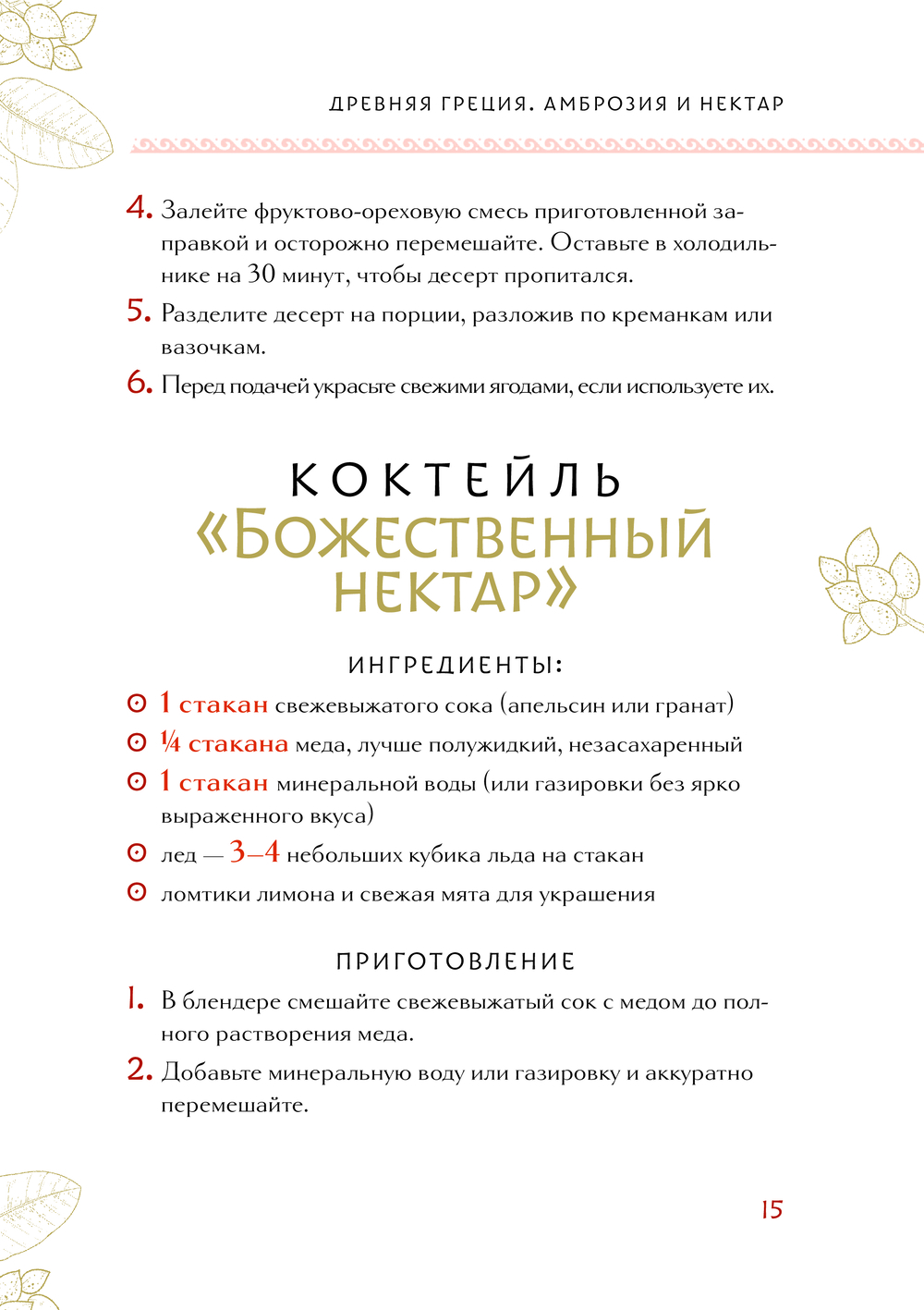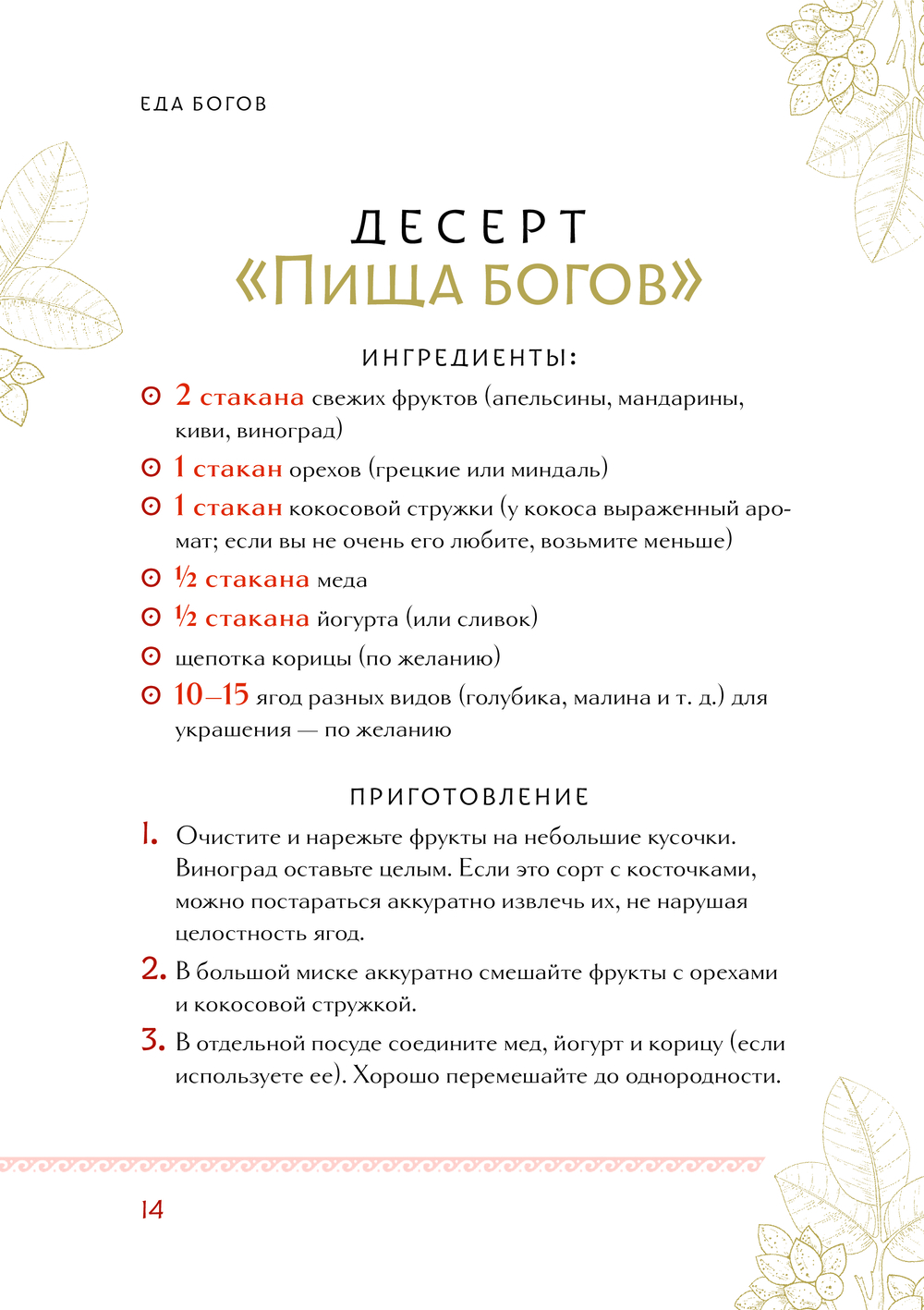 Наша жизнь бывает слишком прозаичной, и каждодневная еда быстро приедается. Так не обратиться ли нам сразу к богам, мифы о которых знакомы нам с юности. Что ели и пили боги? Какими божественными ингредиентами они наслаждались и были вечно прекрасными и молодыми? Как знакомые фрукты и овощи, мясо и рыба могут превратиться в нежнейшие блюда? В этой роскошной миниатюрной книге заключена разгадка! Персики превращаются в нектары, а гранаты – в утоляющие жажду напитки. Совершенством веет от салата из свежего огурца, феты, спелого авокадо и сладкого перца. Тунец полыхает во рту для любителей острого наслаждения. А рулька кабана под пивом действительно тает во рту. Русские легенды, греческие и скандинавские мифы переплетаются за одним столом, и вы, приготовляя блюда, чувствуете себя на седьмом небе!