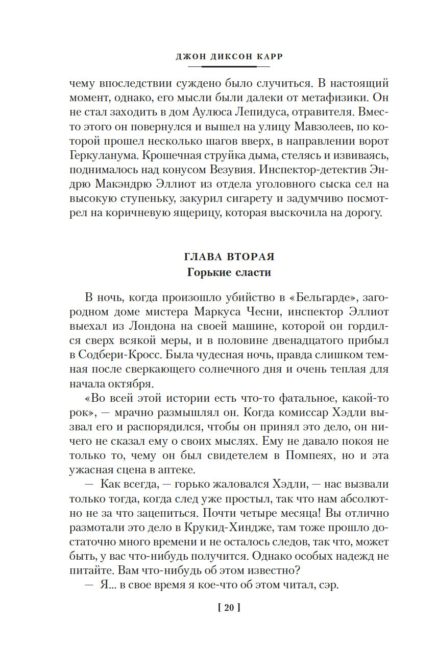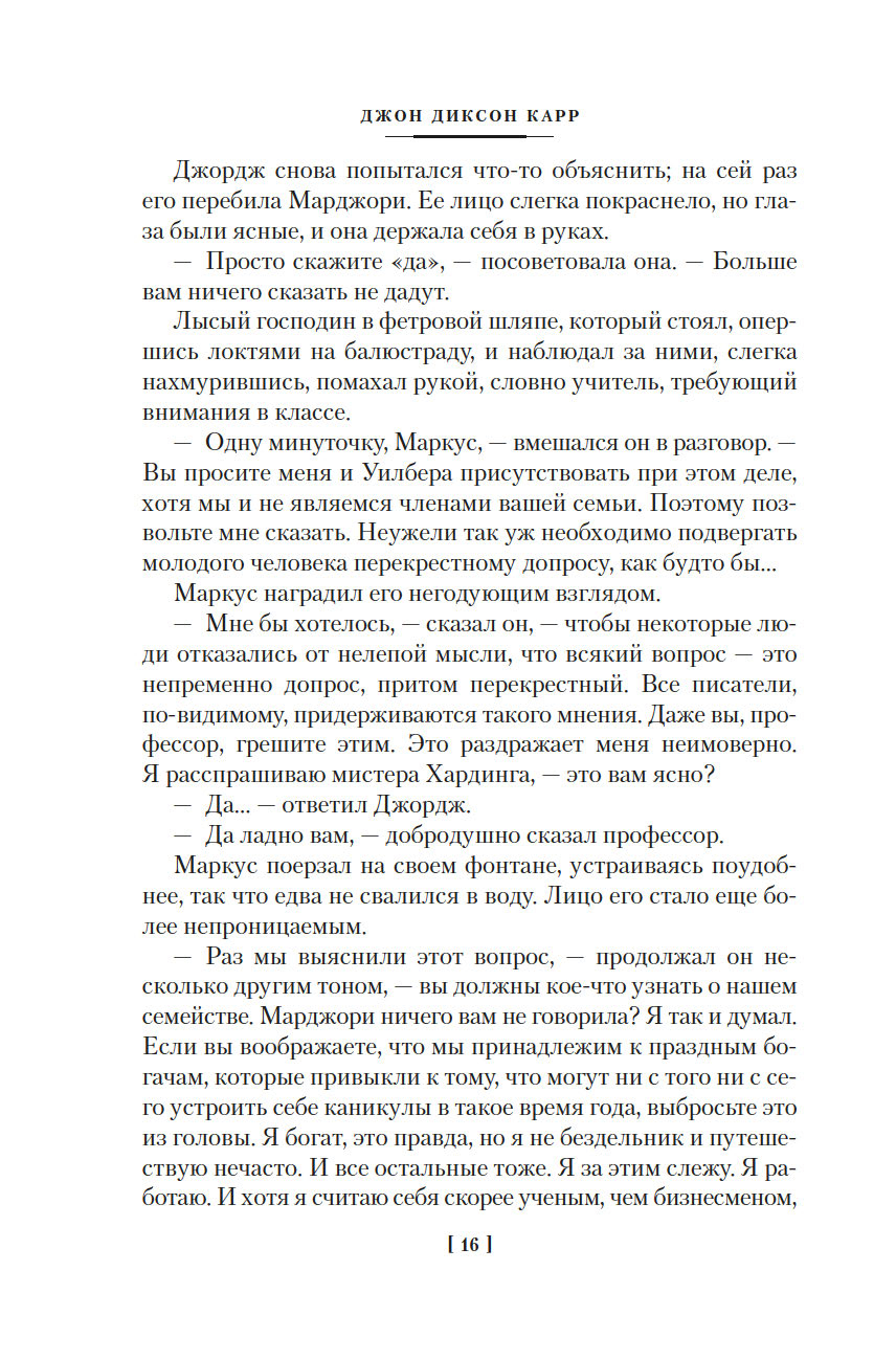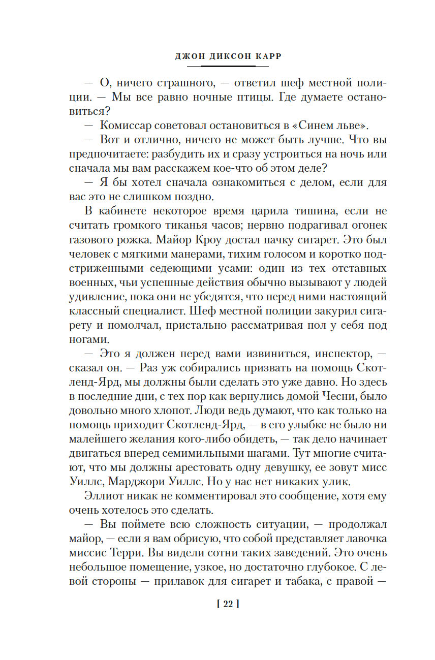 Золотой век детектива подарил нам множество звездных имен. Произведения таких писателей, как Агата Кристи, Гилберт Честертон, Эрл Стэнли Гарднер, Рекс Стаут, развивали и совершенствовали детективный жанр, их романы, безоговорочно признанные классикой, по сей день любимы читателями и являются эталоном качества для последующих поколений авторов детективных историй. Почетное место в этой плеяде по праву принадлежит Джону Диксону Карру (1906-1977) – виртуозному мастеру идеально построенных "невозможных преступлений в запертой комнате". В 1933 году Джон Диксон Карр впервые представил публике сыщика-любителя доктора Гидеона Фелла. Внешность героя, предположительно, была списана с другого корифея детективного жанра – Гилберта Честертона, а его заслуги в истории детективного жанра, по мнению большинства почитателей творчества Карра, поистине вызывают уважение. Так, писатель Кингсли Эмис в своем эссе "Мои любимые сыщики" назвал доктора Фелла "одним из трех великих преемников Шерлока Холмса".