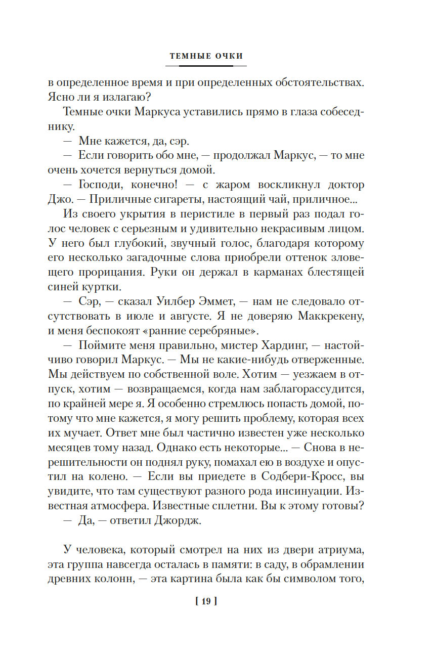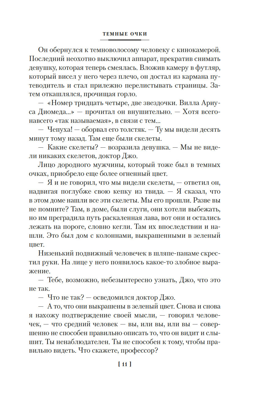 В настоящий сборник вошли десятый, одиннадцатый и двенадцатый романы цикла, повествующие о трех новых головоломных загадках, которые предстоит расследовать доктору Феллу: "Темные очки" (1939), "Клетка для простака" (1939) и, впервые в новом переводе, "Человек, который не боялся" (1940).