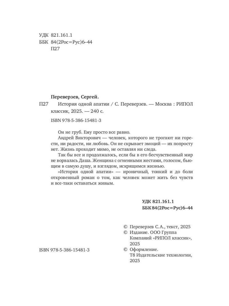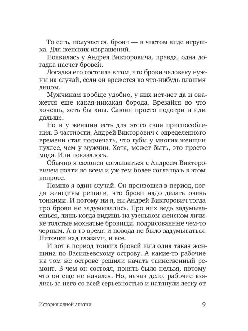 "История одной апатии" – ироничный, тонкий и до боли откровенный роман о том, как человек может жить без чувств и все-таки оставаться живым.