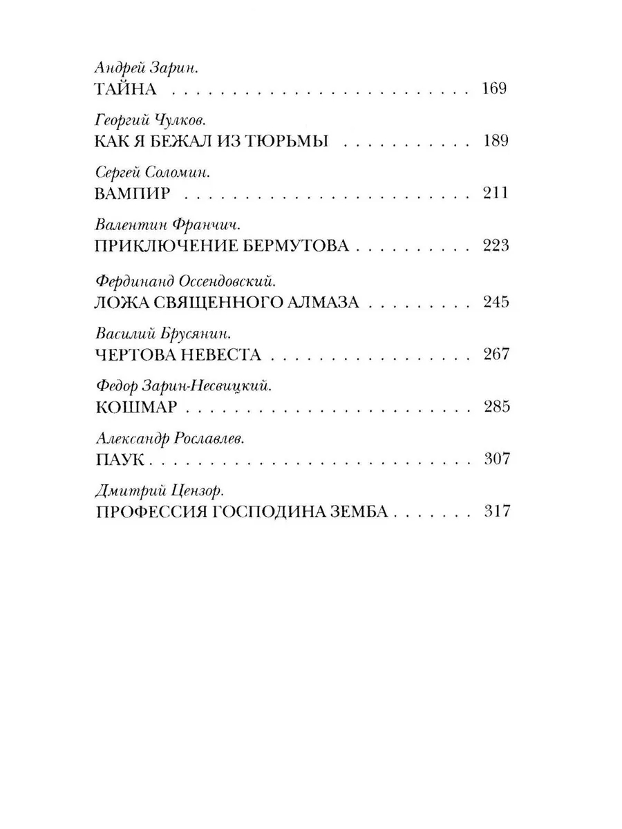 Но русские "страшные рассказы" первой половины XX века достойного уровня сочиняли и такие авторы, с которыми современный читатель, увы, совершенно не знаком. Это Николай Карпов, Сергей Соломин, Федор Зарин, Валентин Франчич и Фердинанд Оссендовский, да и многие другие, с чьими творениями нам предстоит встретиться на страницах этой книги.