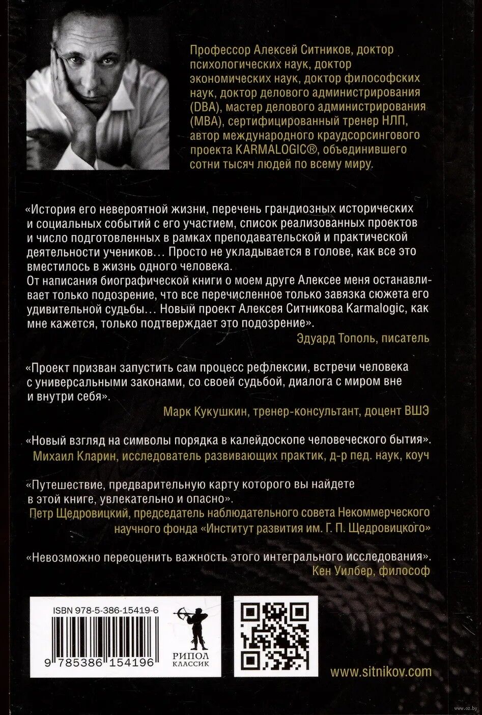 Его цель – создание современного свода универсальных законов жизни, которые способны оказывать влияние на судьбу, предостерегать от возможных ошибок при взаимодействии с окружающим миром природы и людей, а также служить гармонизации внутреннего мира человека. В этой книге читатель найдет 54 закона судьбы, полученные в результате дискуссий на многочисленных семинарах, тренингах и психотерапевтических сессиях, проведенных Алексеем Ситниковым.