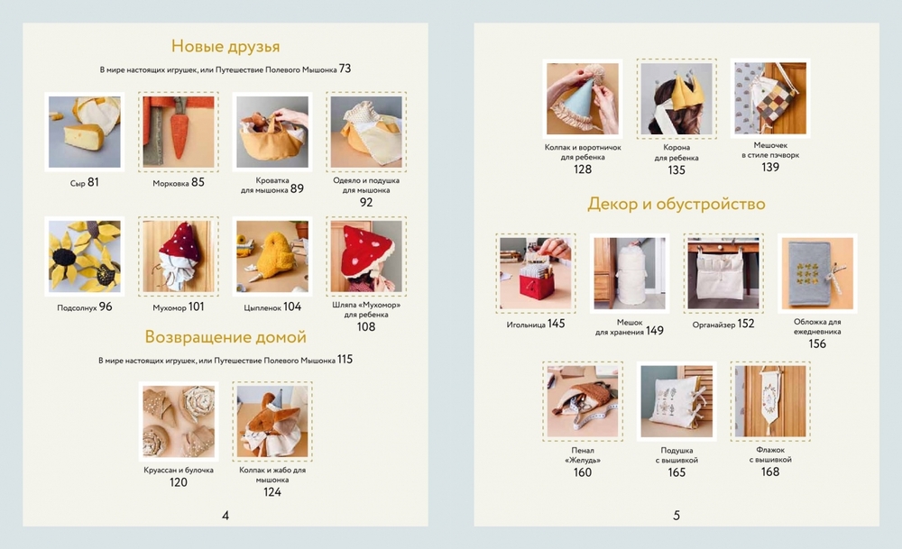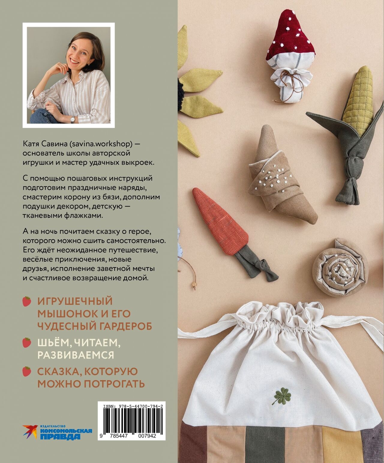 Волшебная сказка о приключениях очаровательного Мышонка, который оживает на страницах книги и обзаводится собственным гардеробом – от панамы до брючек. Катя Савина (savina.workshop) – основатель школы авторской игрушки и мастер создания простых и удачных выкроек – делится простыми идеями, как стильно и уютно декорировать детскую комнату, используя самые доступные материалы: нитки, иголку, картон, синтепон и хлопковые ткани – от фланели и бархата до вельвета и муслина.