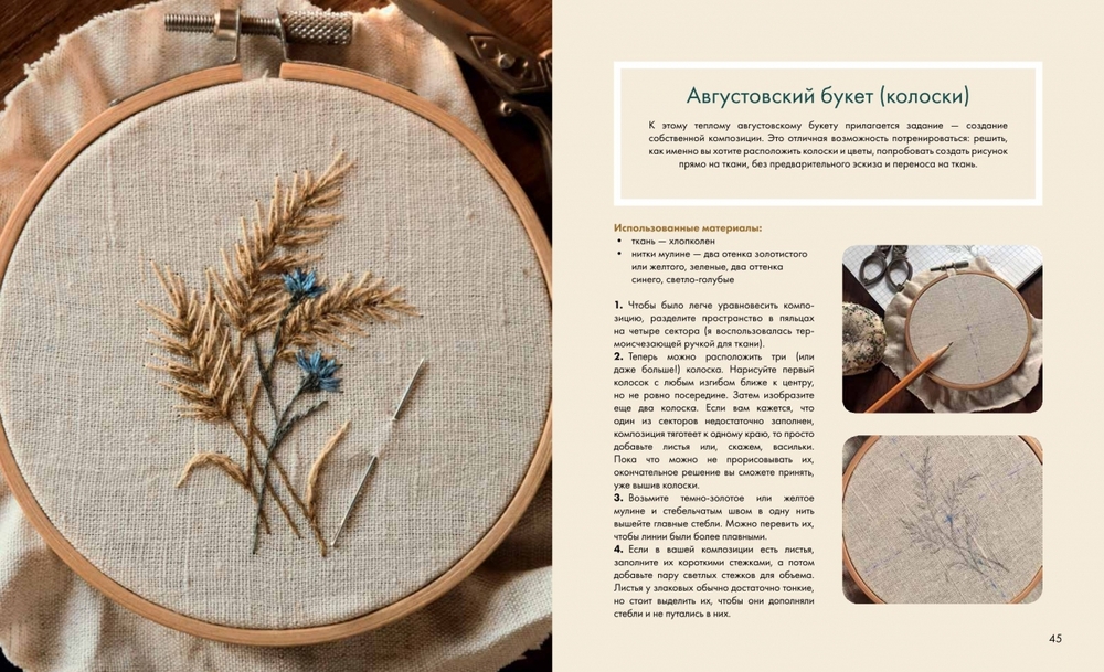 А еще сделаем первые шаги в свободной вышивке: познакомимся с инструментами и материалами, узнаем, как перенести на ткань любой рисунок и какие швы понадобятся для работы. Автор предлагает 21 уникальный урок для отработки навыков. "Земляника", "Клевер", "Цветочная лиса", "Пейзаж", "Папоротник", "Енот", "Ежевика" и многие другие для вашего неповторимого стиля, вдохновленного миром растений и животных.