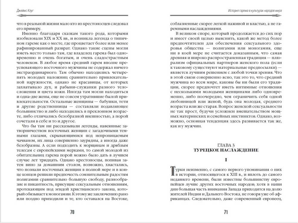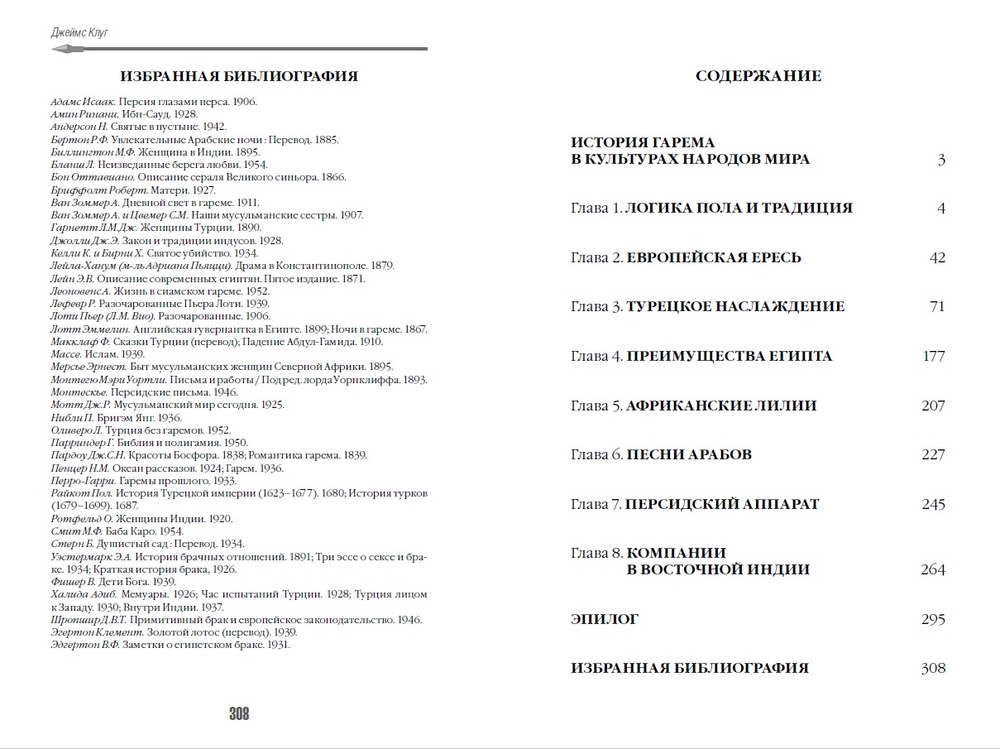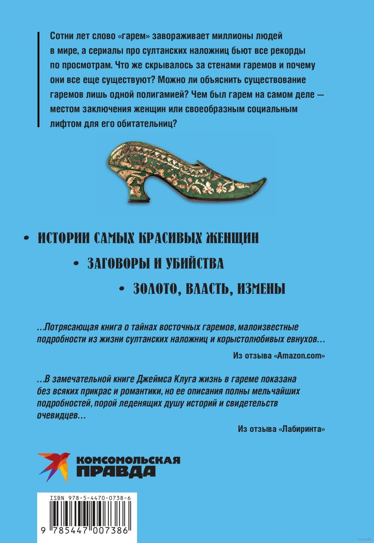 Книга известного английского историка Джеймса Клуга рассказывает историю гаремов с древнейших времен и до начала ХХ века. Автор разбирает самые разные стороны жизни гаремов, рассматривает статус его обитателей, сравнивает гаремы разных стран, передает европейские слухи и легенды о восточных гаремах..