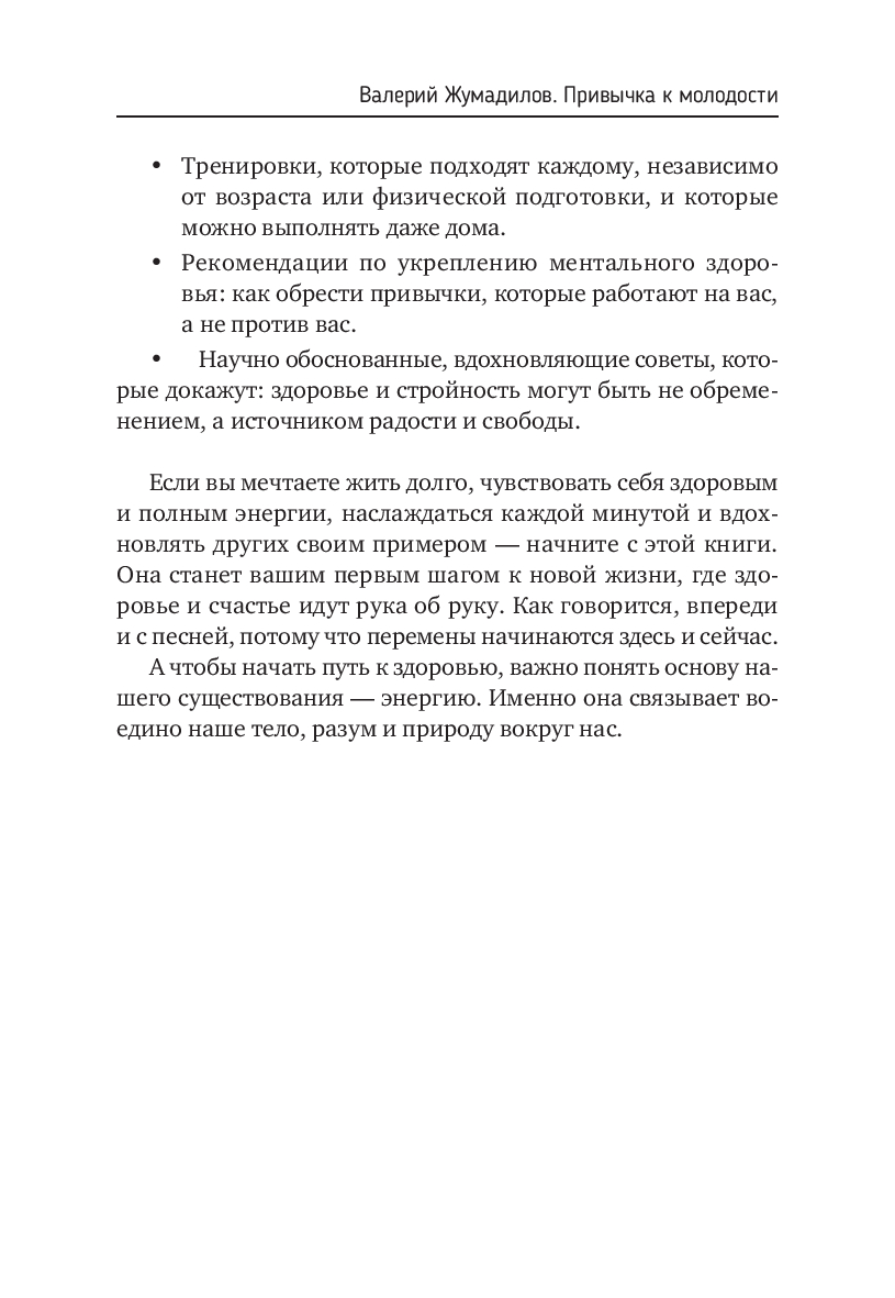 В книге вы найдете пошаговую программу, которая поможет вам составить персональный план питания и тренировок, подходящих именно вам. Вы получите научно обоснованные рекомендации по укреплению физического и ментального здоровья, с которыми вы сможете поддерживать результат и оставаться в прекрасной форме, сколько бы лет вам ни было!