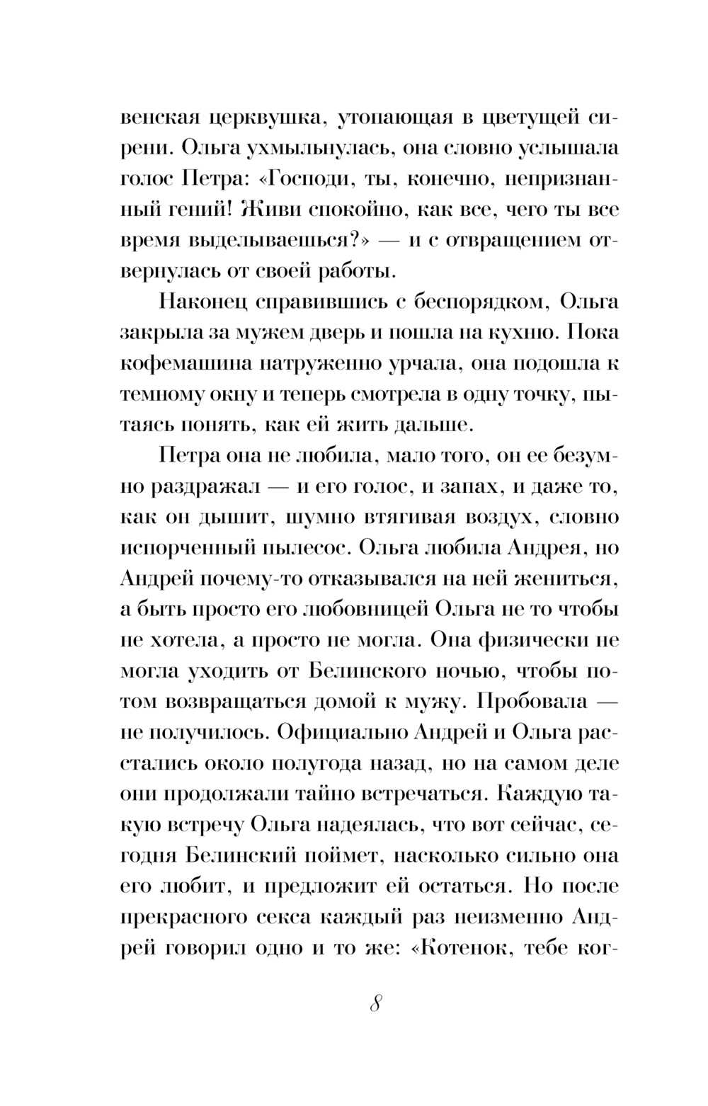 Ольга запуталась в своей жизни. Муж Петр с каждым днём становится всё более невыносимым. Любовник, ради которого она готова была разрушить брак, вдруг исчезает из ее жизни. Мир рушится, но самое страшное ждет впереди.