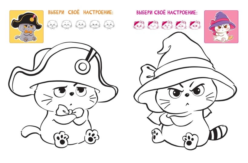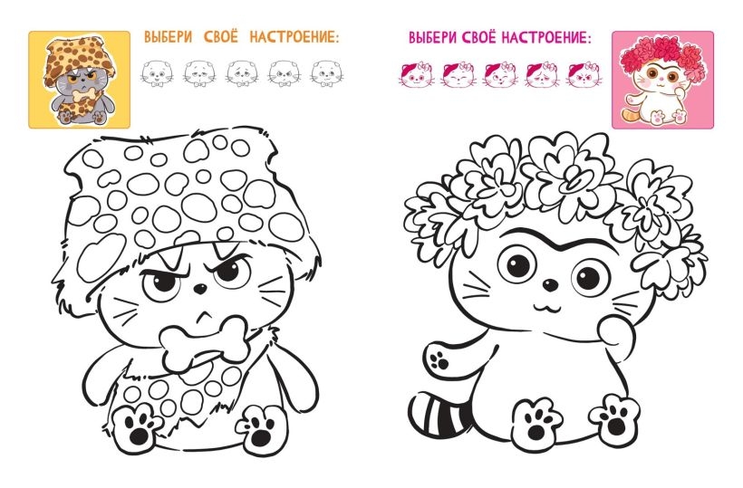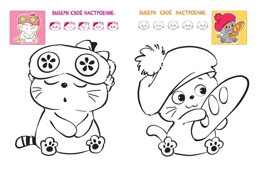 Рядом с каждым рисунком есть дополнительные элементы для раскрашивания – трекер настроения, где ты можешь раскрасить свою эмоцию!