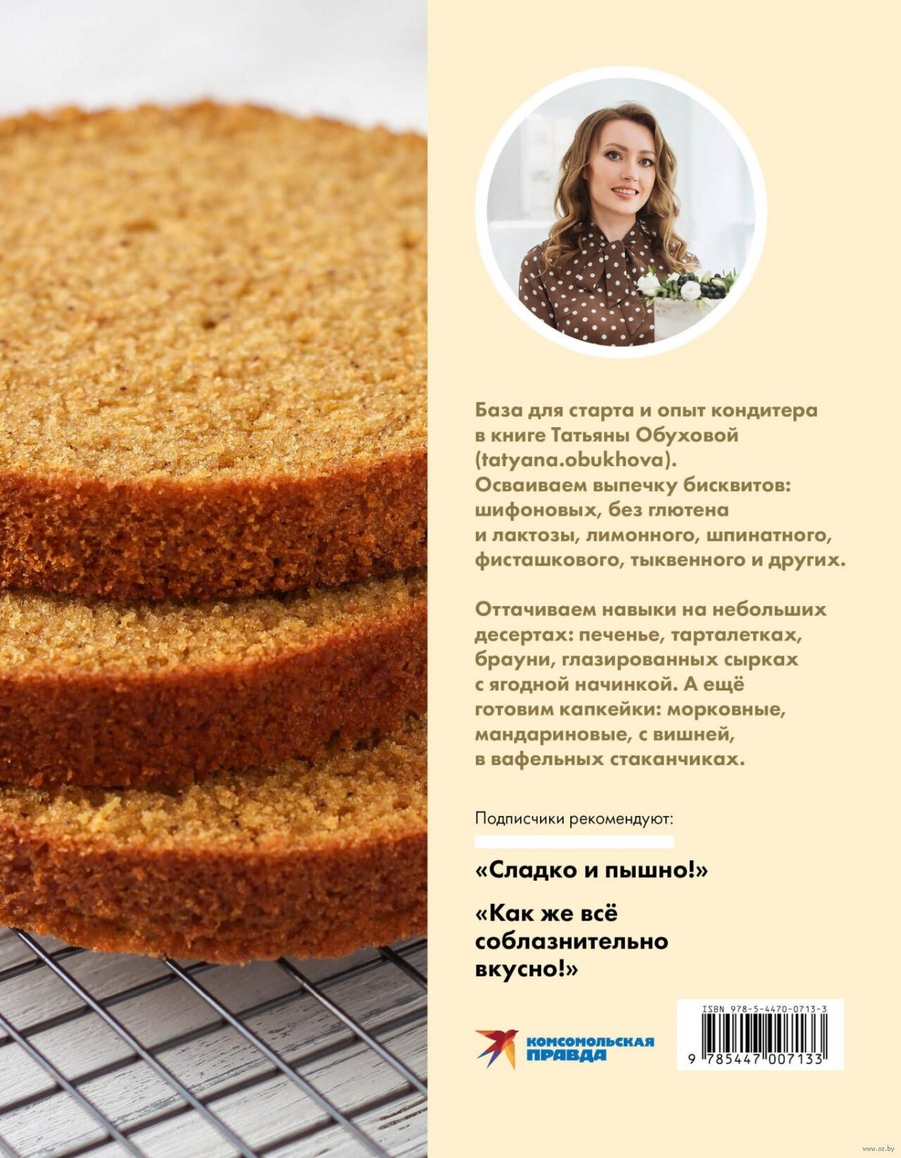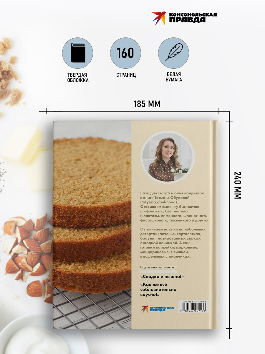 Всё начинается с идеального бисквита! Простые, но эффектные рецепты для начинающих кондитеров и кондитеров с амбициями. Базовые навыки и виртуозные советы для развития в книге мастера выпечки Татьяны Обуховой (tatyana.obukhova). Осваиваем выпечку бисквитов: шифоновых, без глютена и лактозы, лимонного, шпинатного, фисташкового, тыквенного и других. Оттачиваем навыки на небольших десертах: печенье, тарталетках, брауни, глазированных сырках с ягодной начинкой. А ещё готовим капкейки: морковные, мандариновые, с вишней, в вафельных стаканчиках. Подписчики Татьяны не устают благодарить автора за рецепты: "Сладко и пышно!", "Как же всё соблазнительно вкусно!", "Получается с первого раза!". Присоединяйтесь к компании мастеров безупречной выпечки.