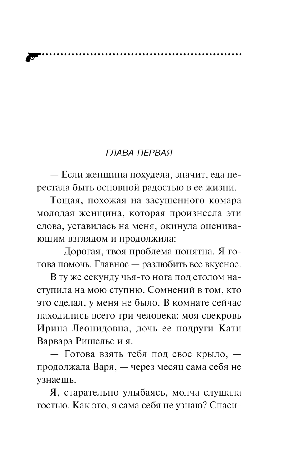 Татьяна Сергеева давно поняла простую истину: худеющие люди опасны. Особенно если они не просто худеют, а превращают процесс в культ. В ее доме поселилась Варвара Ришелье – нутрициолог, флорист, грумер, маникюрша и стилист в одном лице. Варя с фанатизмом взялась за Танино здоровье, заставив несчастную завтракать серой гречкой без масла и творожком, который по консистенции напоминал строительную шпаклевку.