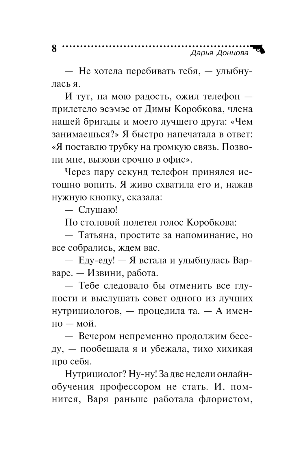 Но вскоре выяснилось, что гречка без соли – не самое страшное в жизни Татьяны. В особняке влиятельных Зотовых загадочно исчез управляющий – человек, который был не только финансистом и администратором, а почти членом семьи. Все уверены, что он просто решил отдохнуть, но только не горничная Соня, выросшая в детдоме и привыкшая ощущать беду кожей. Она готова заплатить любые деньги, лишь бы Сергеева начала поиски. Татьяне придется забыть о голодной диете, ведь на кону – жизнь человека, а возможно, и ее собственная.