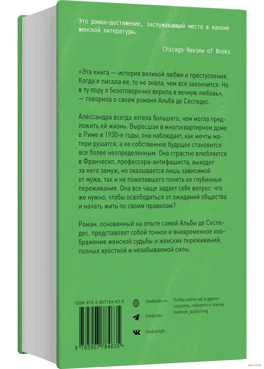 Роман, основанный на опыте самой Альбы де Сеспедес, представляет собой точное и вневременное изображение женской судьбы и женских переживаний, полных яростной и незабываемой силы.