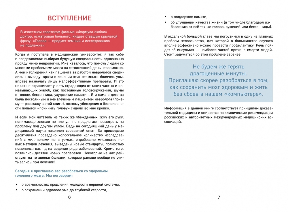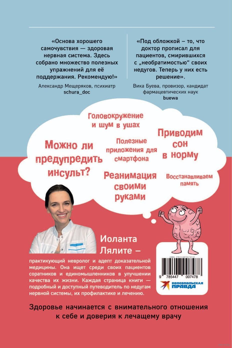 Почему кружится голова? Откуда берется шум в ушах? Можно ли предотвратить внезапный инсульт? Как победить изнуряющую бессонницу? Правда ли, что хорошую память в любом возрасте можно натренировать, а компьютерные игры из врагов сделать друзьями, которые помогут сохранить когнитивные способности. Какие анализы и диагностика действительно подскажут возможные проблемы, и главное – как человеку отличить безобидные симптомы "проблем с мозгом" от опасных? Ответы на эти и многие другие тревожащие вопросы в книге практикующего невролога Иоланты Лялите. Доктор сторонник доказательной медицины и делает ставку на проверенные методы, например, вестибулярную гимнастику и когнитивно-поведенческую терапию, помогая сотням пациентов улучшить качество жизни. Книга станет надежным помощником каждому читателю, у кого есть мозг.