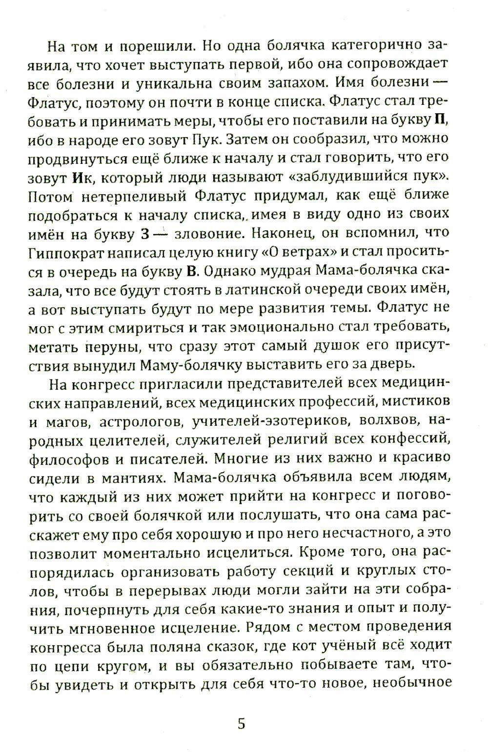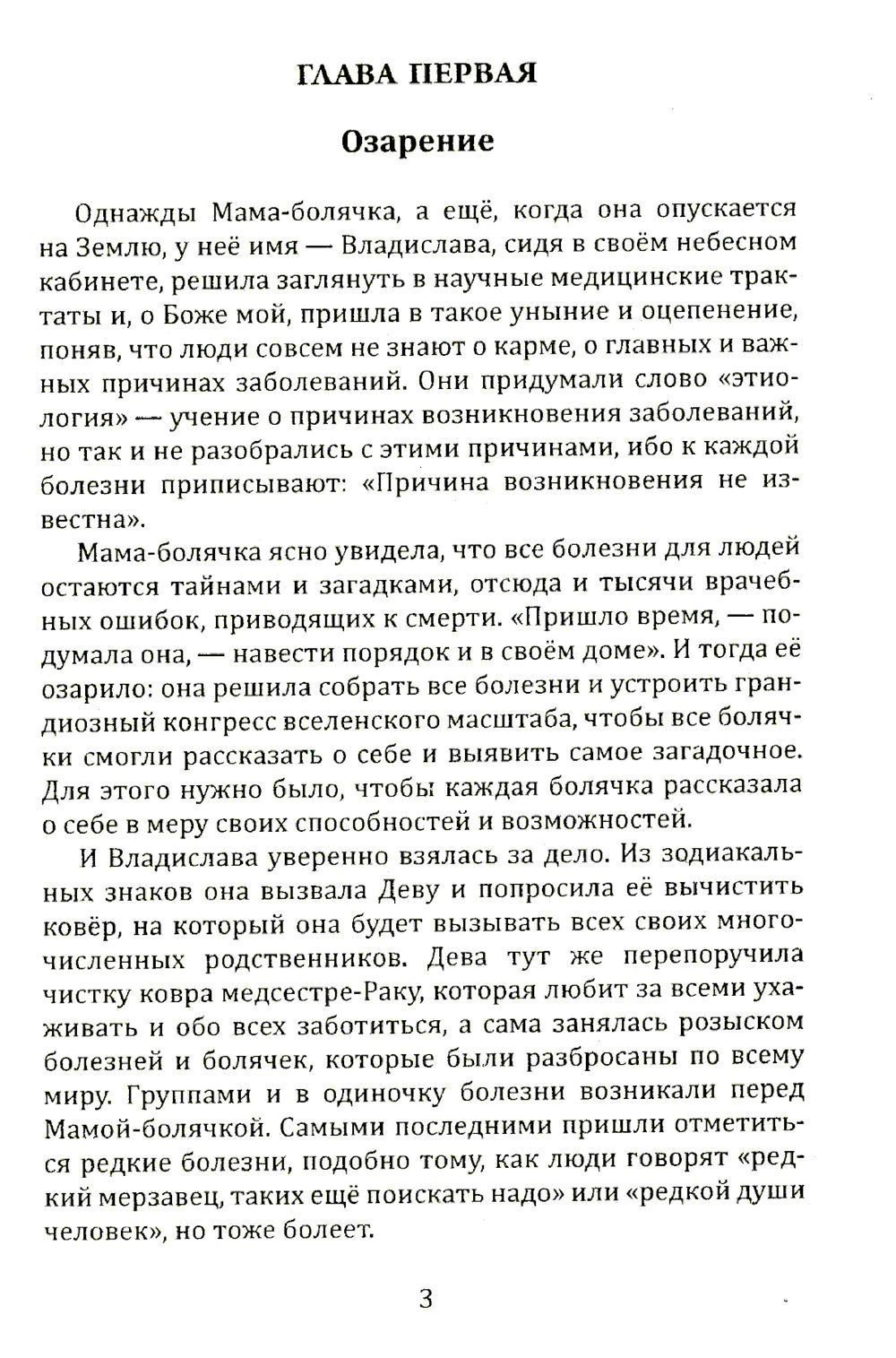 Однажды Мама-болячка собрала все болезни на конгресс, чтобы они могли рассказать о себе, о причинах своего истинного возникновения. И болячки с удовольствием рассказывали о том, за что полюбили конкретного человека, чем он им приглянулся и почему они не хотят от него уйти. Как возникает болезнь, как она находит удобное для себя место в теле человека, какой урок она даёт своему носителю, о чём она хочет рассказать, чему научить?
