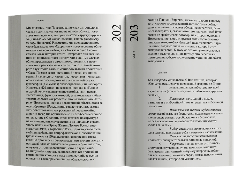 В замке, монастыре, фаланстере читателю предлагается испытать удовольствие от текста – воспринять и присвоить не его содержание, но заложенные в нем дискурсивные формулы, фантазматический порядок, спроецированный на повседневность, – жить вместе с Садом, Фурье, Лойолой.