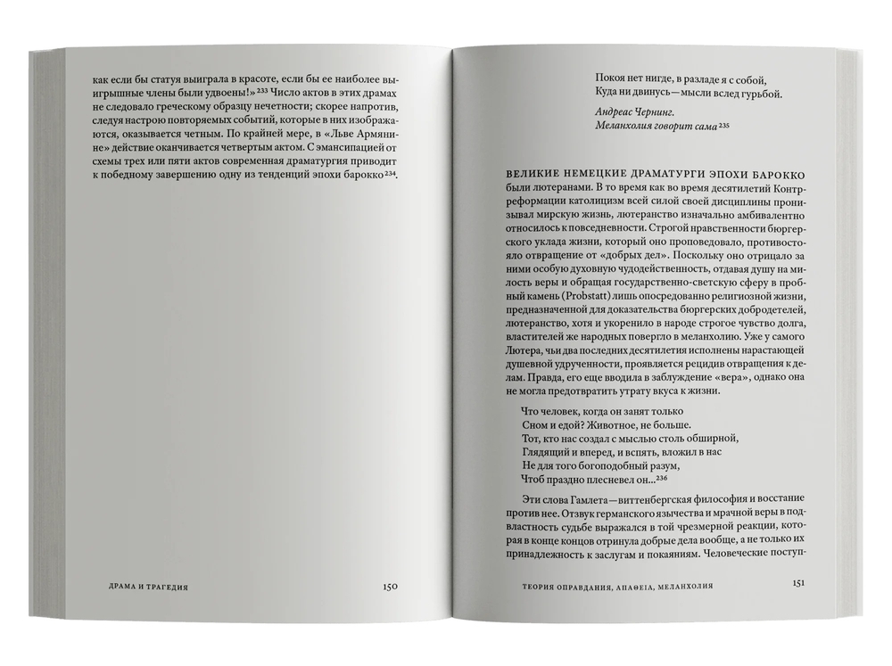 Барокко в анализе немецкого философа вдруг оказывается не "актуальным" как зеркало современности, но одним из возможных ответов – причем на редкость трезвым и глубоким – на те вопросы, которые встали перед человеком, пережившим и продолжающим переживать трагические события ХХ века.