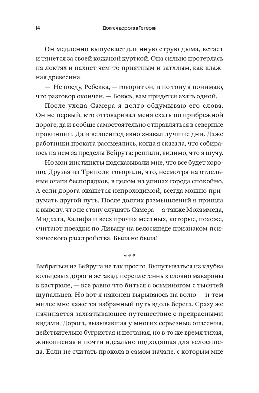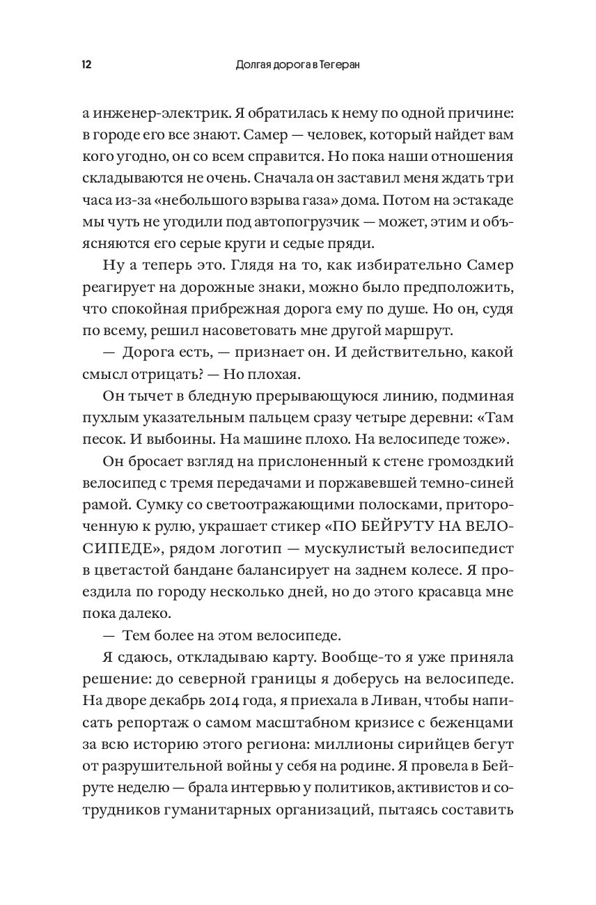В разгар сирийской войны 2015 года британская журналистка Ребекка Лоу села на велосипед и в одиночку отправилась из Лондона в Тегеран – через пустыни, горы и диктаторские режимы, преодолев двадцать стран и одиннадцать тысяч километров. В этом путешествии Ребекка пьет чай с беженцами и политическими активистами, отбивается от навязчивых ухажеров, попадает в песчаные бури, едва не теряет сознание от жажды – и раз за разом выпутывается из передряг благодаря помощи незнакомцев. "Долгая дорога в Тегеран" – живой и честный портрет современного Ближнего Востока, где репрессии, повсеместный сексизм и бюрократический абсурд соседствуют с традиционным гостеприимством, а юмор и человечность помогают пережить самые тяжелые испытания.
