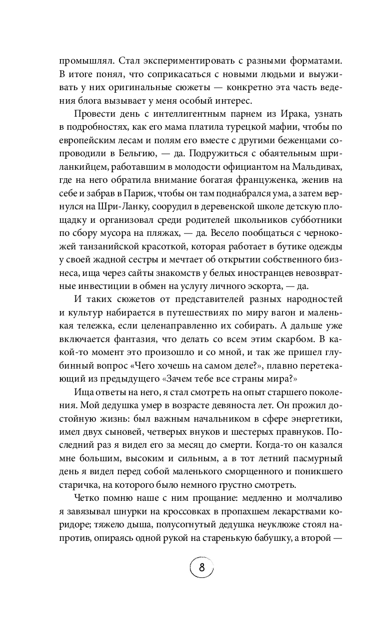 Его история – это признание в любви к миру и людям. К тем, кто встречается на пути, и к тем, кто читает о нем. Пристегните ремни – впереди только нескончаемые виражи впечатлений и километры открытий!
