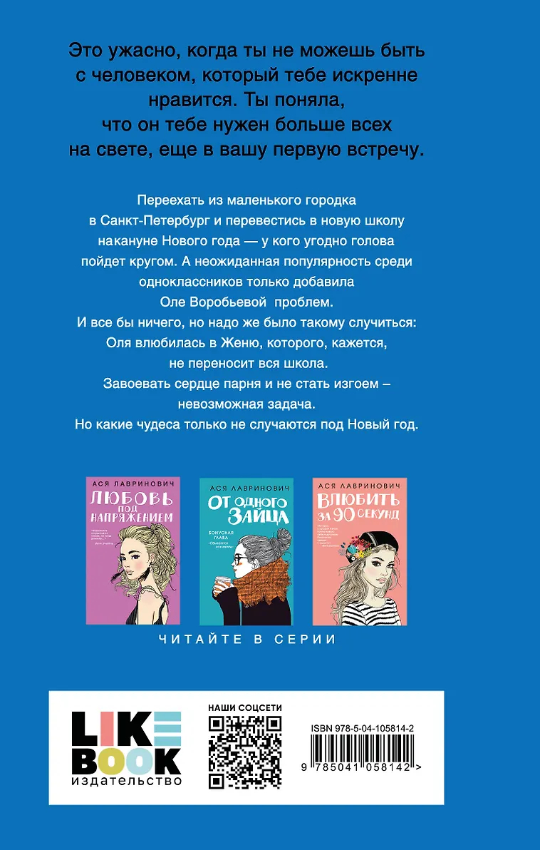 Переехать из маленького городка в Санкт-Петербург и перевестись в новую школу на кануне Нового года – у кого угодно голова пойдет кругом. А неожиданная популярность среди одноклассников только добавила Оле Воробьевой проблем. И все бы ничего, но надо же было такому случиться: Оля влюбилась в Женю, которого, кажется, не переносит вся школа. Завоевать сердце парня и не стать изгоем – невозможная задача. Но какие чудеса только не случаются под Новый год.