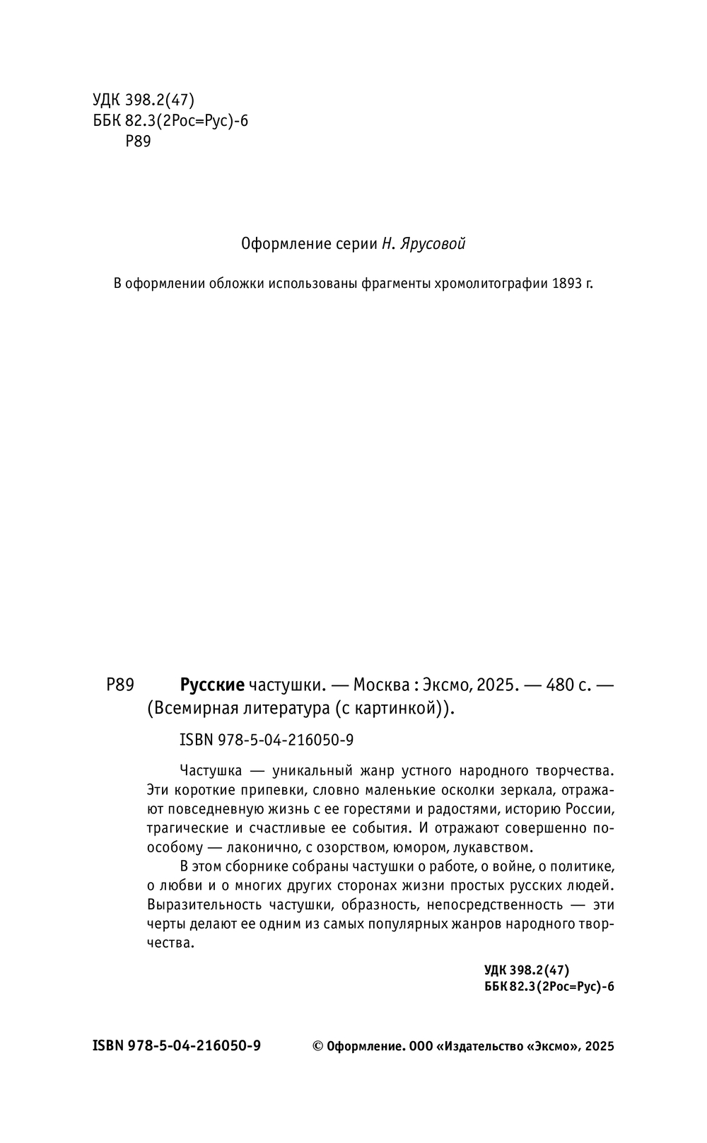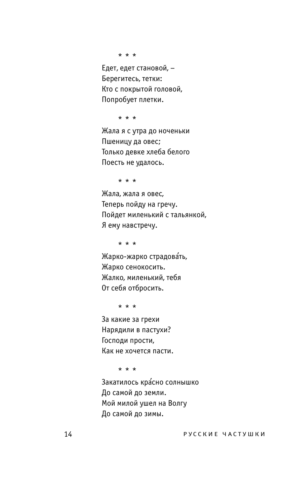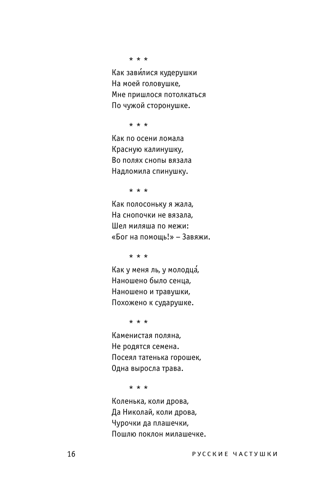 В этом сборнике собраны частушки о работе, о войне, о политике, о любви и о многих других сторонах жизни простых русских людей. Выразительность частушки, образность, непосредственность – эти черты делают ее одним из самых популярных жанров народного творчества.