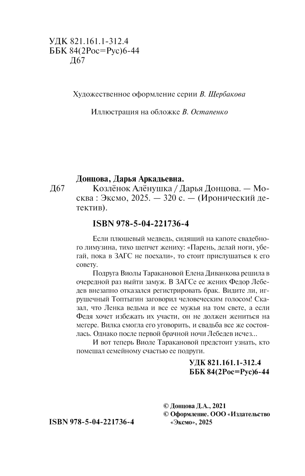| Изготовитель | ООО «Издательство «Эксмо». РФ, г. Москва, ул. Клары Цеткин, 18, корп. 5 |