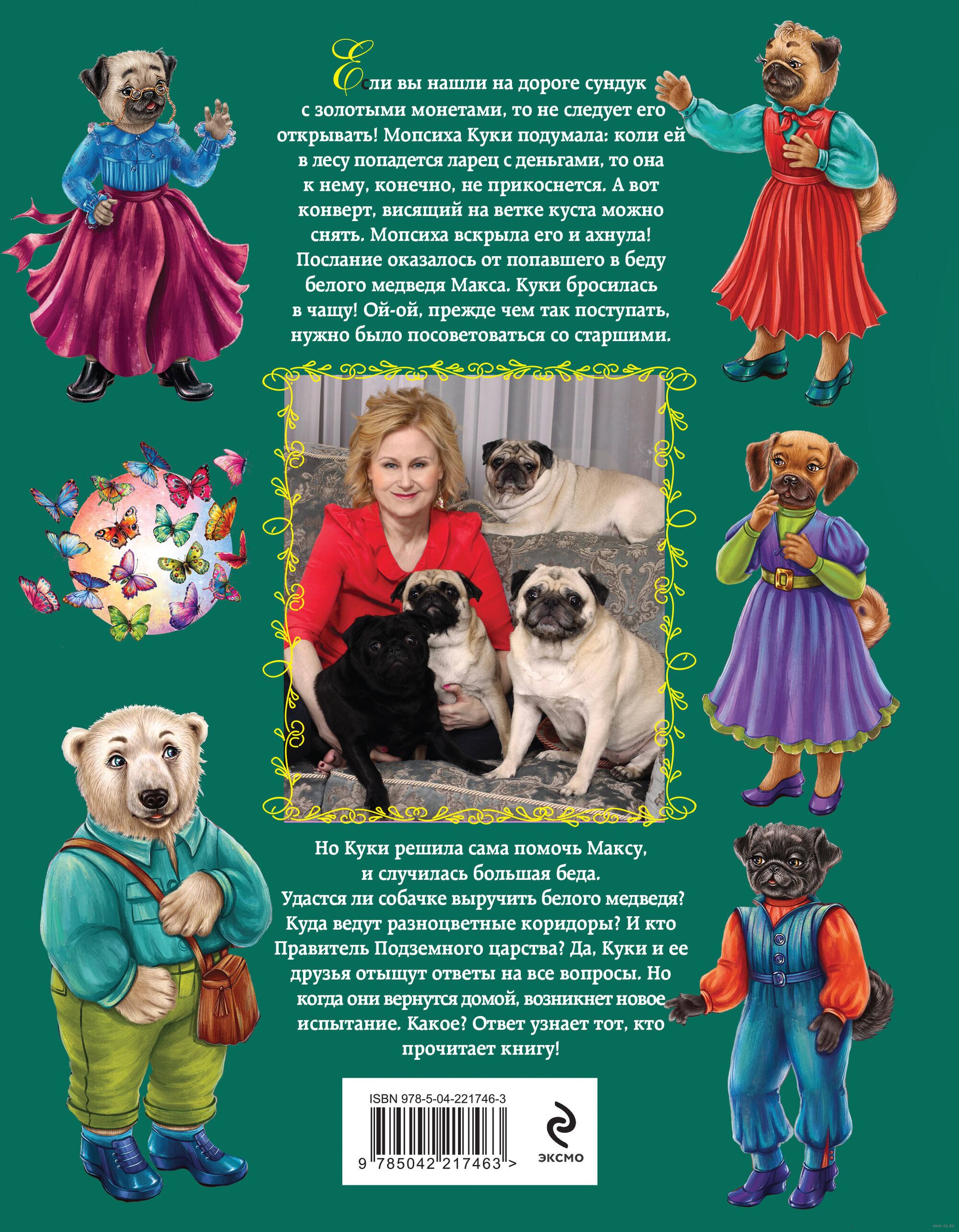 Если вы нашли на дороге сундук с золотыми монетами, то не следует его открывать! Мопсиха Куки подумала: коли ей в лесу попадется ларец с деньгами, то она к нему, конечно, не прикоснется. А вот конверт, висящий на ветке куста можно снять. Мопсиха вскрыла его и ахнула! Послание оказалось от попавшего в беду белого медведя Макса. Куки бросилась в чащу! Ой-ой, прежде чем так поступать, нужно было посоветоваться со старшими. Но Куки решила сама помочь Максу, и случилась большая беда. Удастся ли собачке выручить белого медведя? Куда ведут разноцветные коридоры? И кто Правитель Подземного царства? Да, Куки и ее друзья отыщут ответы на все вопросы. Но когда они вернутся домой, возникнет новое испытание. Какое? Ответ узнает тот, кто прочитает книгу!