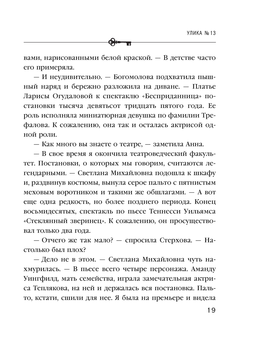Анна выяснила, что костюм принадлежал талантливой актрисе Тамиле Тепляковой, но поговорить с ней не смогла. Оказывается, та погибла прямо во время спектакля, упав в люк под сценой, который случайно оказался открытым! И произошло это примерно в то же время, когда было сделано пугающее фото…