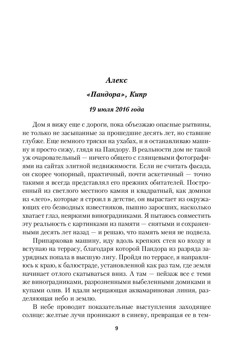 Пандора – старинный дом на Кипре, который Хелена, профессиональная балерина, получила в наследство от крестного. В юности она провела там отпуск, который изменил ее жизнь и о котором она никогда не рассказывала близким.