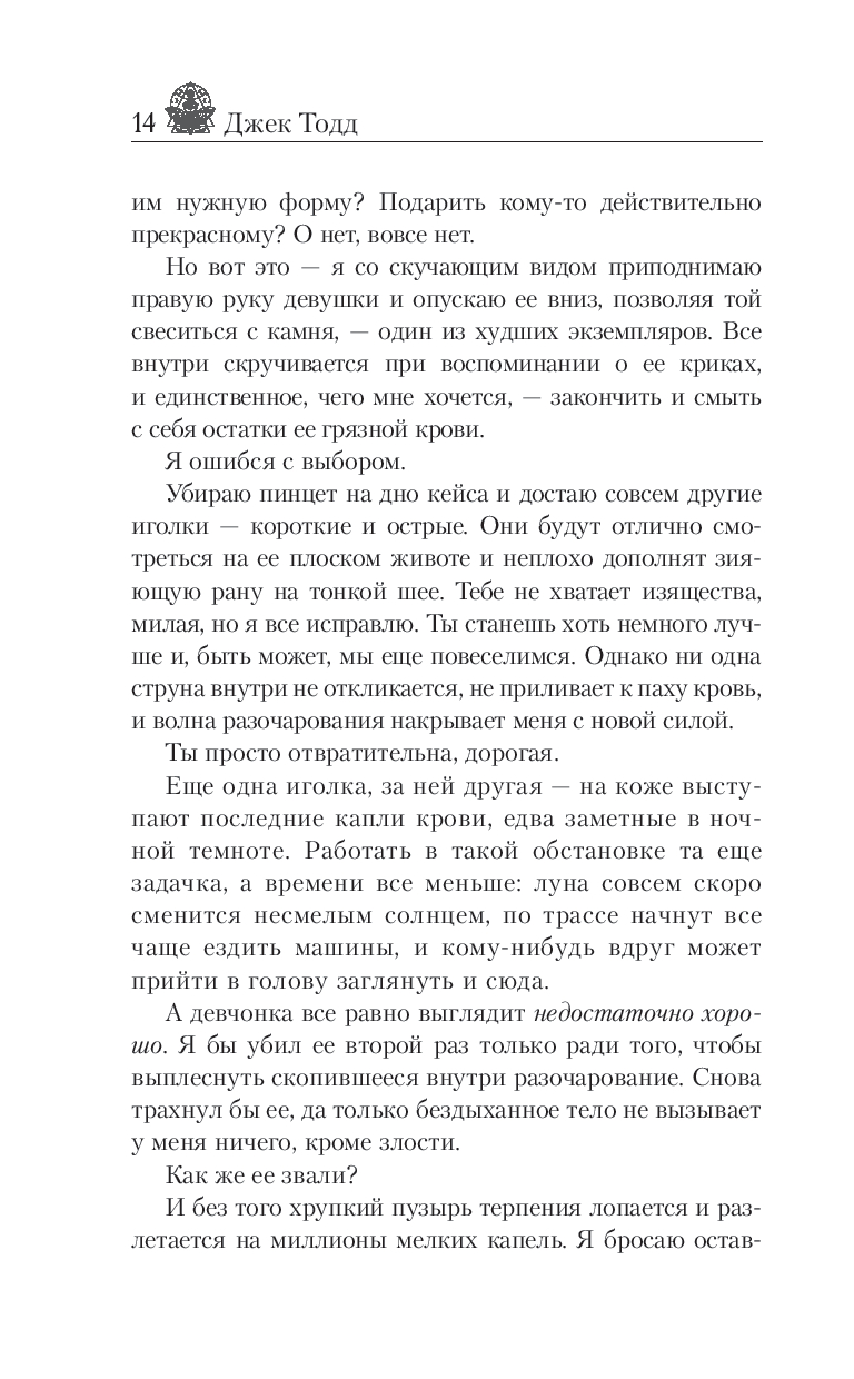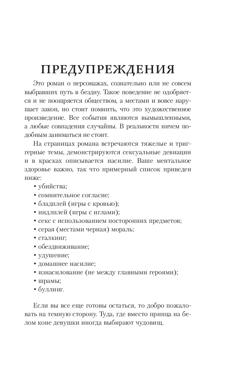 Я уничтожал девушек одну за другой, но ни одна не удостоилась стать той самой, ни в одной я не видел идеала, пока наконец не встретил ее. В глазах Ванды Уильямс столько злости, боли и отчаяния, что я просто не могу сопротивляться. Если кто-то и имеет право сломать ее, так это я. Моя милая муза еще не знает, но она уже принадлежит мне. С того самого дня, как я впервые увидел ее сквозь окно того жуткого дома. Не переживай, дорогая, я вытащу тебя оттуда, сколько бы ты ни сопротивлялась. Потому что твое чудовище – это я. И только я.