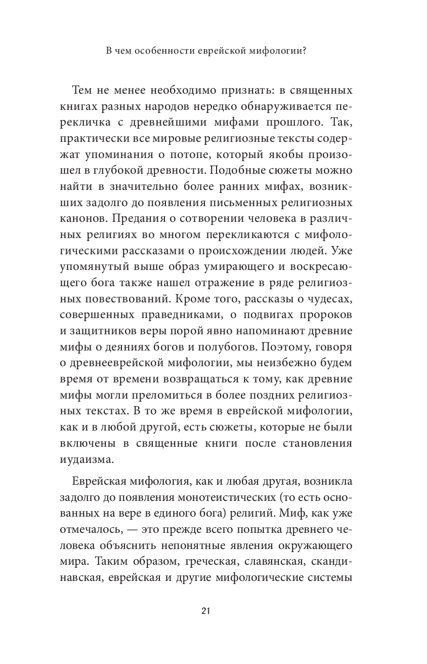 "Еврейские мифы" приглашают погрузиться в тайны одной из самых древних и влиятельных мировых культур. Вы узнаете, как из раннесемитских верований постепенно выделился культ Яхве и почему Он не всегда был единственным Богом, к каким событиям приурочены еврейские праздники, что общего у библейских историй с шумеро-аккадскими преданиями и другими древнейшими мифами Ближнего Востока и как сюжеты, рождавшиеся на заре человеческой истории, по сей день отражаются в искусстве и культуре. На страницах этой книги вас ждут мифы семитских народов о сотворении мира и человека: вавилонский миф о борьбе бога Мардука с богиней Тиамат, финикийский о боге-творце Моте, ханаанский о боге Баале, слепившем первых людей из росы и пыли; классические истории о Давиде и Голиафе, Самсоне и Далиле, о самоотверженной Эсфирь и о богоизбранном герое Гидеоне – и еще множество других.