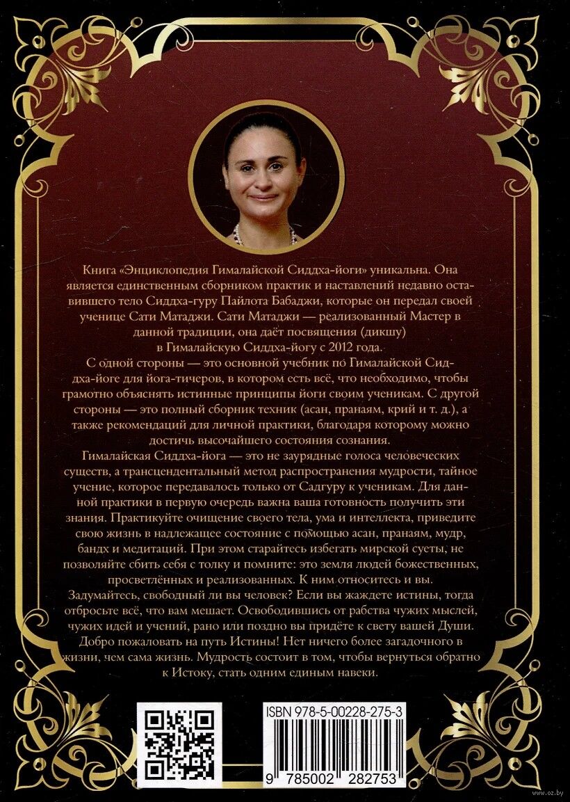 Сати Матаджи – это реализованный Мастер в данной традиции, она даёт посвящения (дикшу) в Гималайскую Сиддха-йогу с 2012 года. С одной стороны – это основной учебник по Гималайской Сиддха-йоге для йога-тичеров, в котором есть всё, что необходимо, чтобы грамотно объяснять истинные принципы йоги своим ученикам. С другой стороны – это полный сборник техник (асан, пранаям, крий и т. д.), а также рекомендаций для личной практики, благодаря которому можно достичь высочайшего состояния сознания.