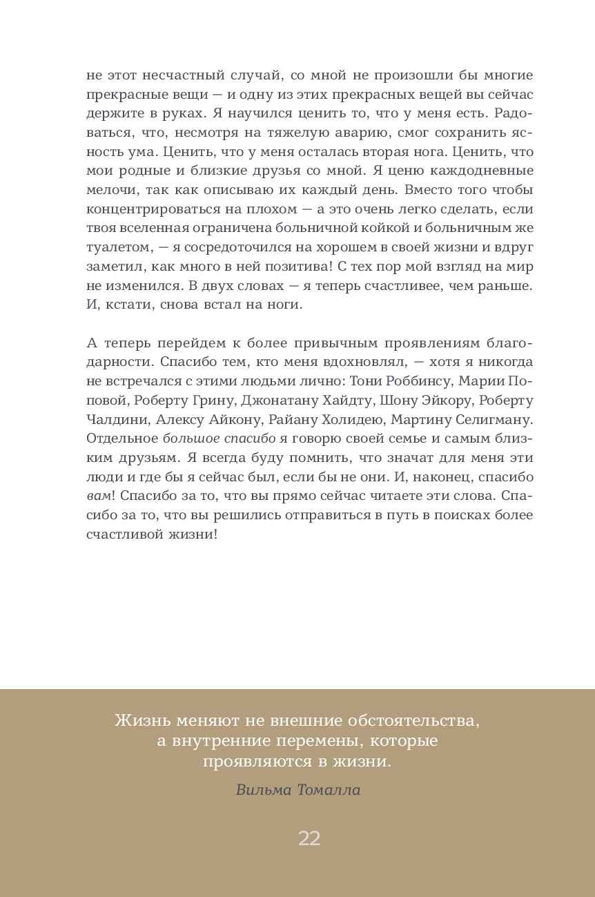 Счастье не является результатом везения или случайного стечения обстоятельств. Стать счастливым помогают правильные установки и образ мыслей. 3 минуты утром и 3 минуты вечером – столько времени займет выработка полезных привычек, которые сделают вашу жизнь осознаннее, гармоничнее, а значит, счастливее.