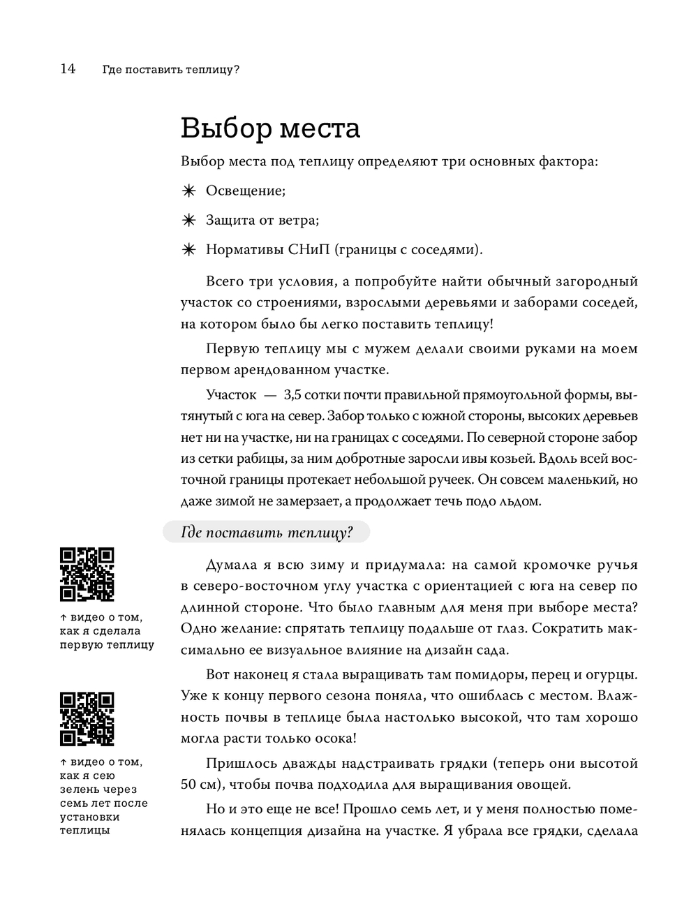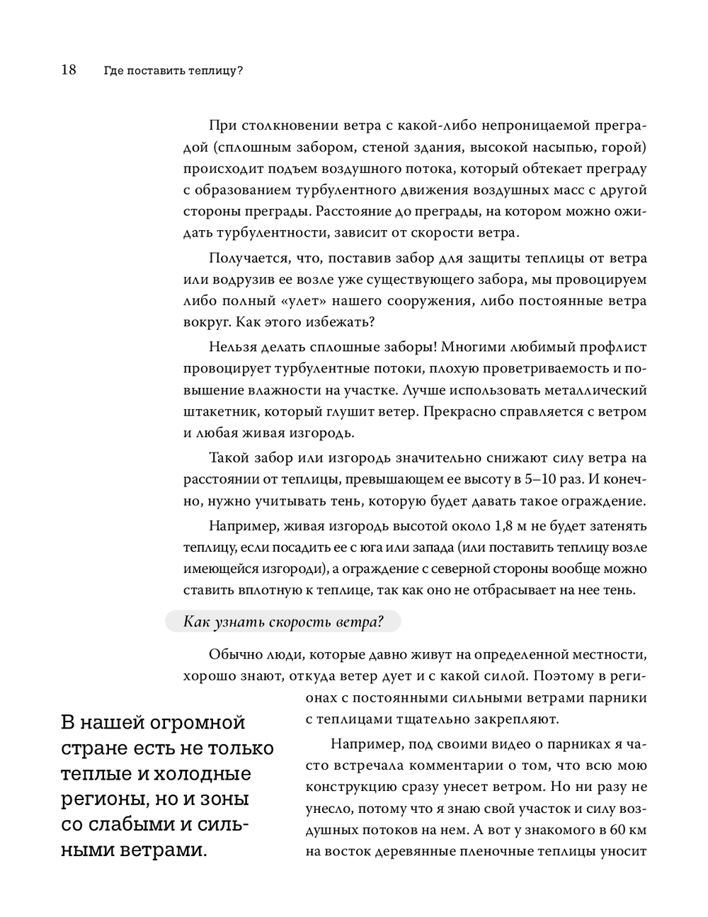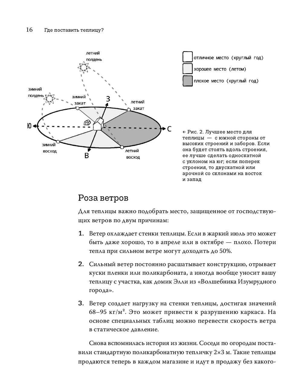 Автор делится не только теорией, но и личным опытом: как построить теплицу, которая выдержит ветер и ваше нетерпение; как использовать розу ветров, солнечный и биологический обогрев; как организовать вентиляцию и притенение без лишних затрат.