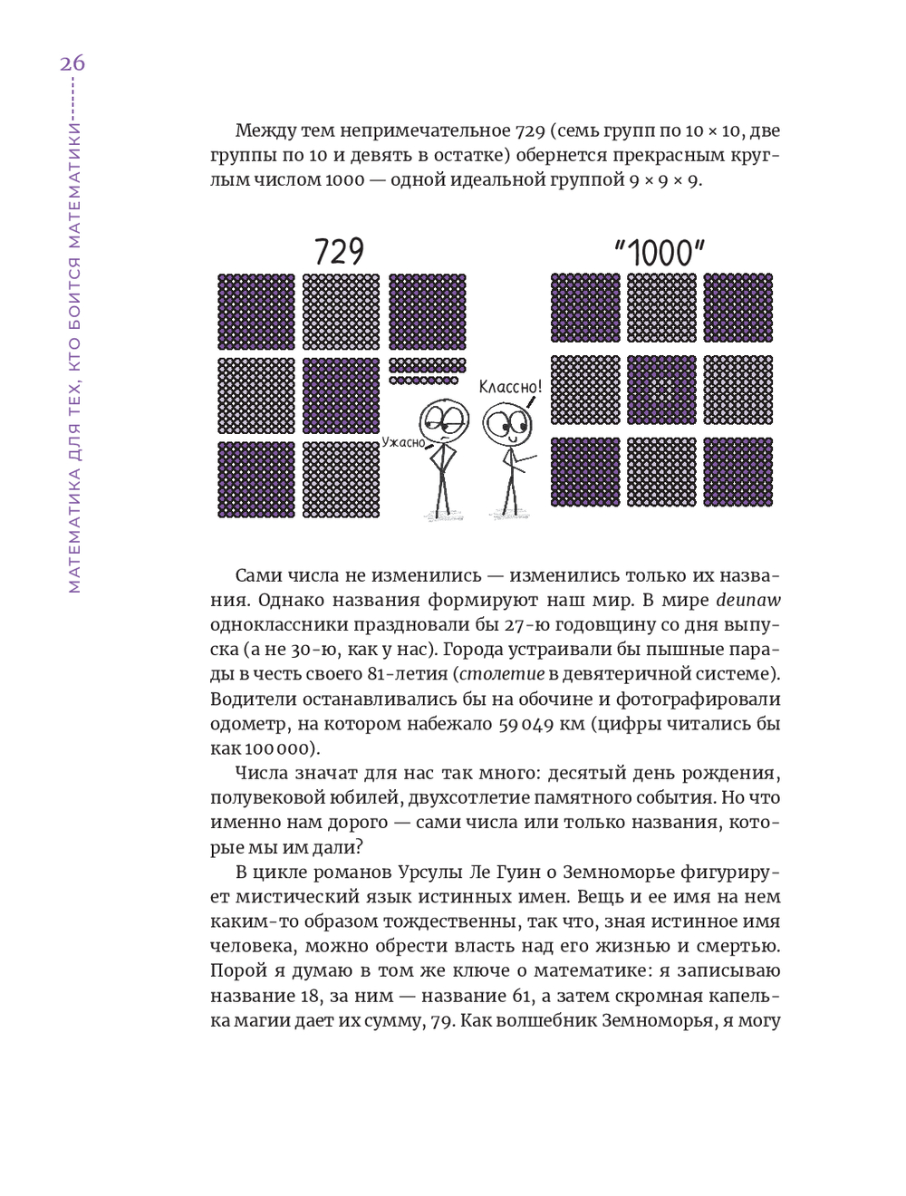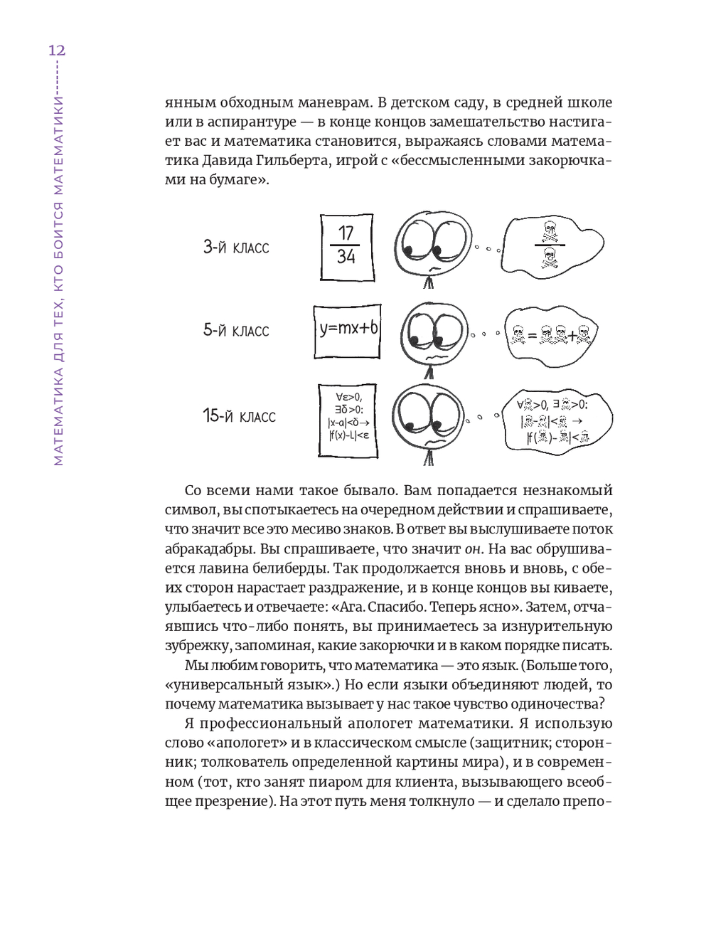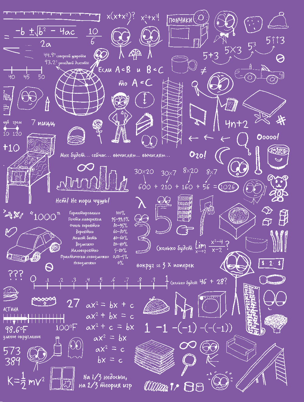 Попутно Орлин делится с читателями историями о собственных математических провалах и прозрениях, а также о трудностях и триумфах своих учеников. Самое главное: с помощью своих неумелых – но на удивление эффективных – рисунков он проливает свет на довольно глубокие и очень разные вопросы. Что именно представляет собой школьная математика? Почему стольким из нас так трудно извлечь из нее что-то путное? Может ли перетасовка символов научить нас чему-то новому о реальности? И наконец, как вообще работает математика?