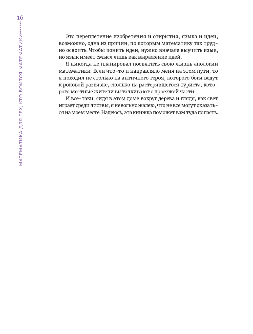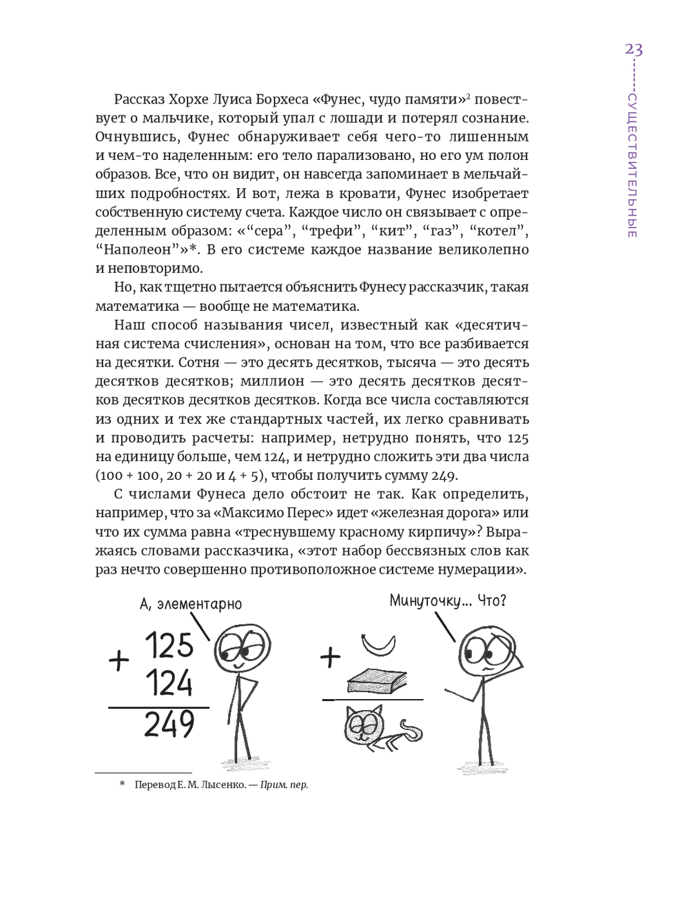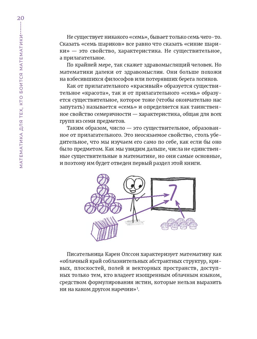 Попутно Орлин делится с читателями историями о собственных математических провалах и прозрениях, а также о трудностях и триумфах своих учеников. Самое главное: с помощью своих неумелых – но на удивление эффективных – рисунков он проливает свет на довольно глубокие и очень разные вопросы. Что именно представляет собой школьная математика? Почему стольким из нас так трудно извлечь из нее что-то путное? Может ли перетасовка символов научить нас чему-то новому о реальности? И наконец, как вообще работает математика?