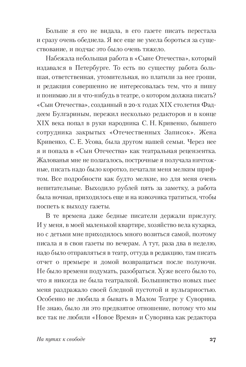 Пережив революцию, гражданскую войну, эмиграцию, она сохранила удивительную честность и внутреннюю цельность. Лишения, разочарования и отчаяние не сломили ее. Судьба свела ее с выдающимися современниками, внесшими вклад в судьбу России: она лично знала В. И. Ленина и Надежду Крупскую, общалась с Иваном Буниным, Зинаидой Гиппиус, Дмитрием Мережковским, Александром Куприным, Петром Струве, Павлом Милюковым.