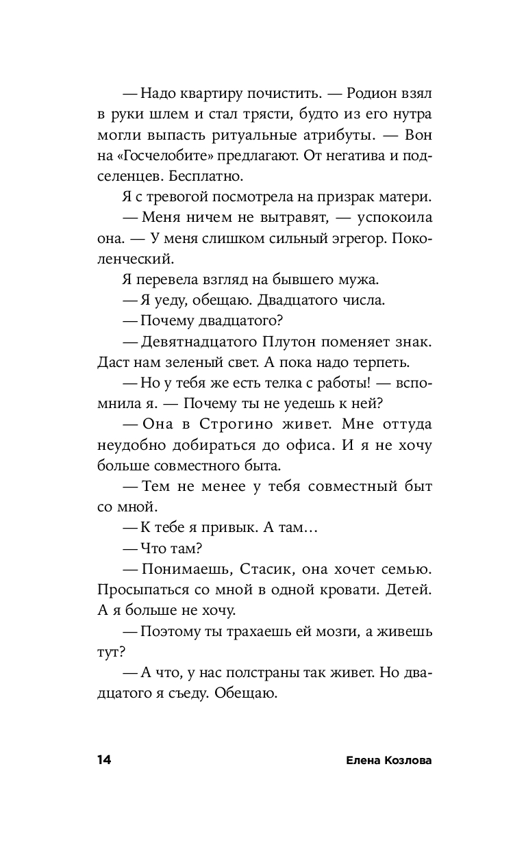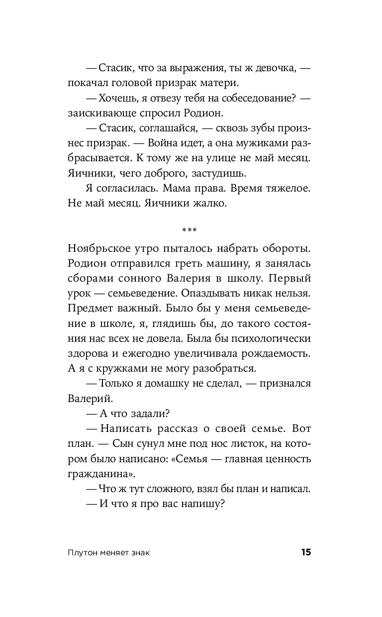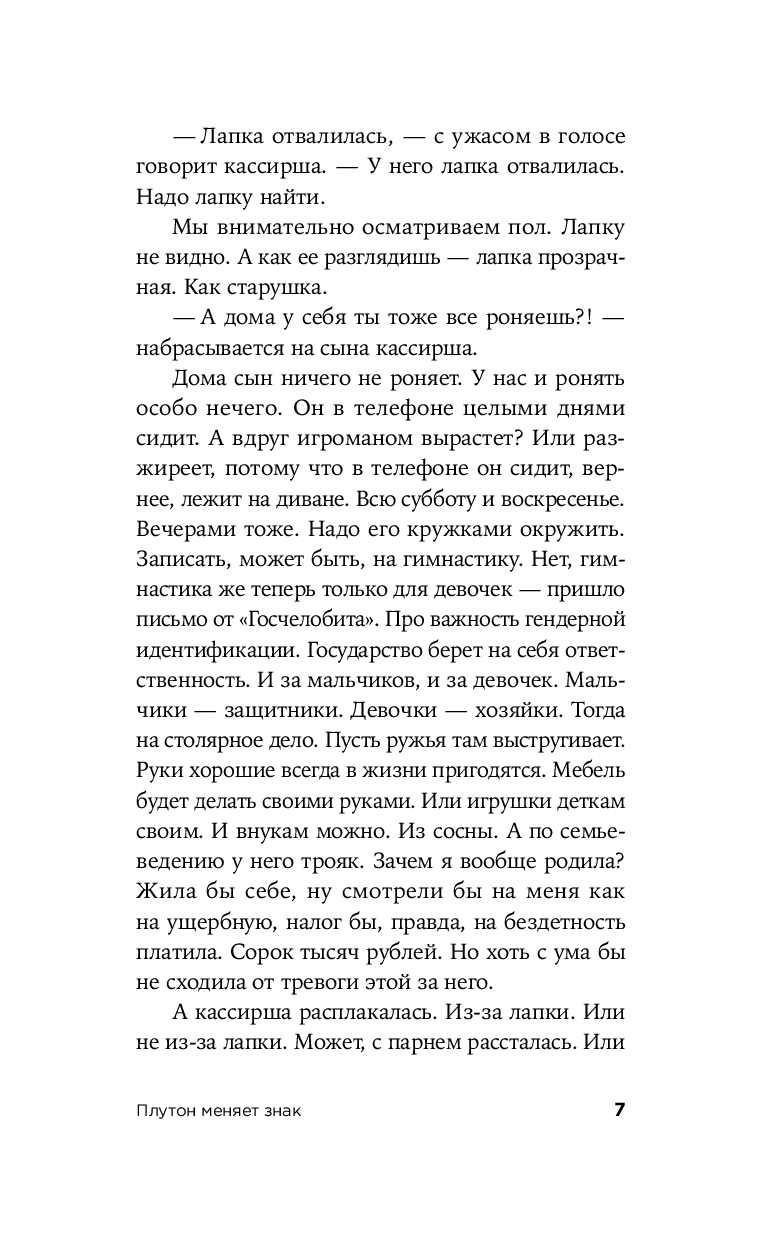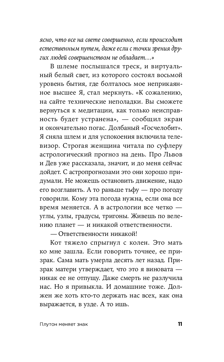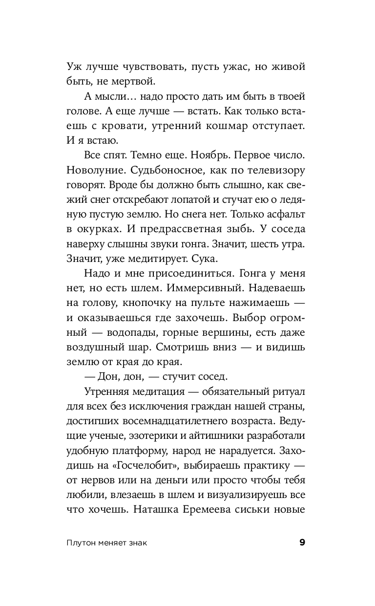 В мире, где каждый шаг регламентирован и больше нет свободного искусства, бывший издатель Анастасия становится клиническим психологом. Ее собственная реальность зыбка и сюрреалистична: в ее квартире живут бывший муж и призрак матери, ее пациенты одержимы нетривиальными зависимостями, ее окружение придает астрологии вес критической рациональности. Но даже в условиях тотального контроля налаженная система однажды дает сбой – и не только потому, что Плутон меняет знак, а значит, все неизбежно придут к всеобщей трансформации, как обещают по телевизору.
