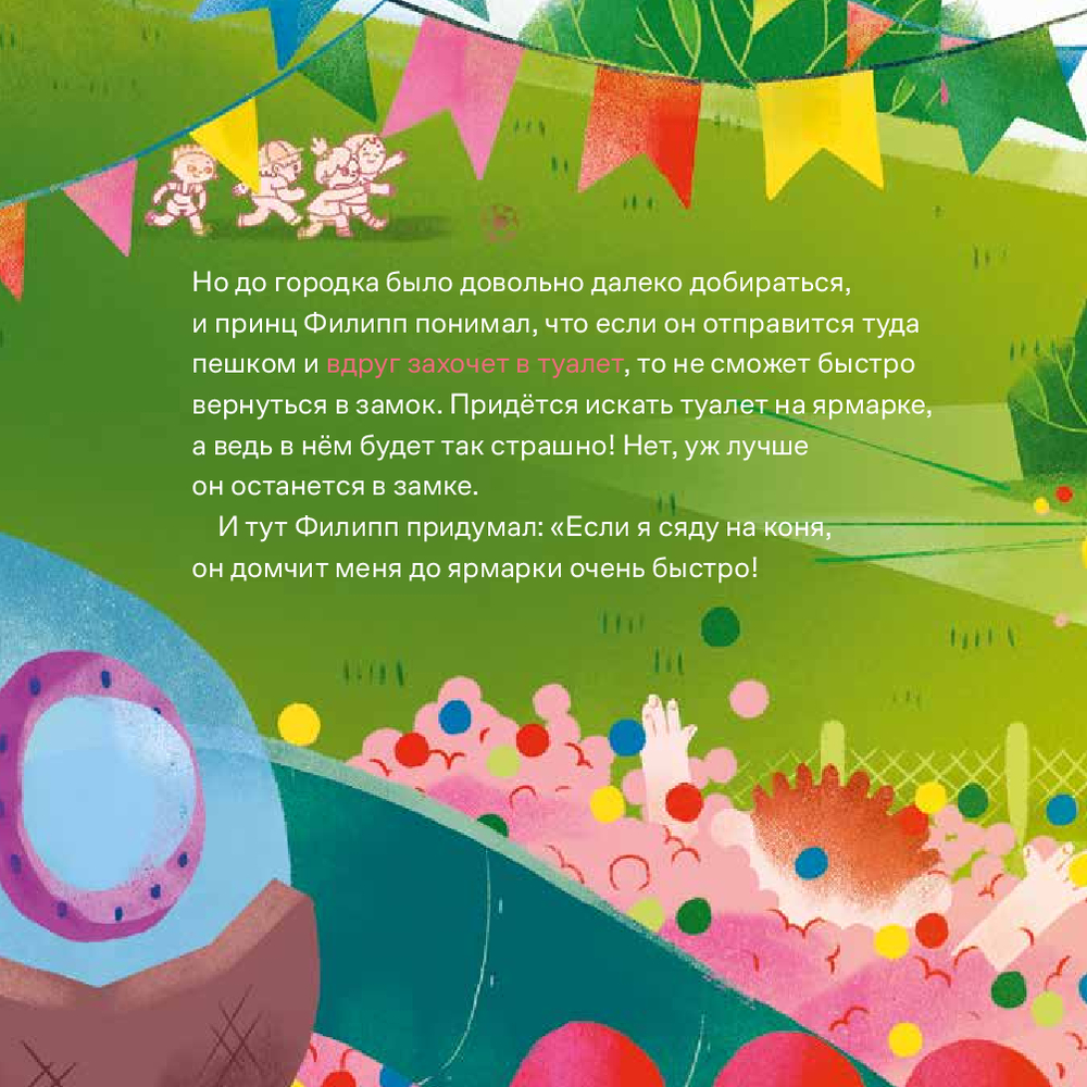 Принц Филипп обожает веселые аттракционы и фокусы, и однажды недалеко от замка раскидывает свои пестрые шатры большая ярмарка, на которой так много интересных развлечений! Но есть одна проблема: как быть, если на ярмарке ему захочется в туалет? Ведь туалеты в общественных местах совершенно не такие замечательные, как у Филиппа в замке...