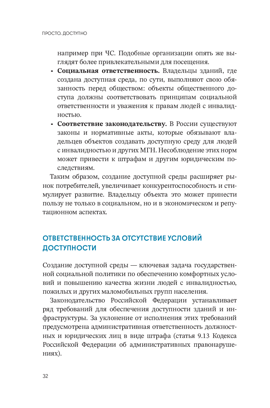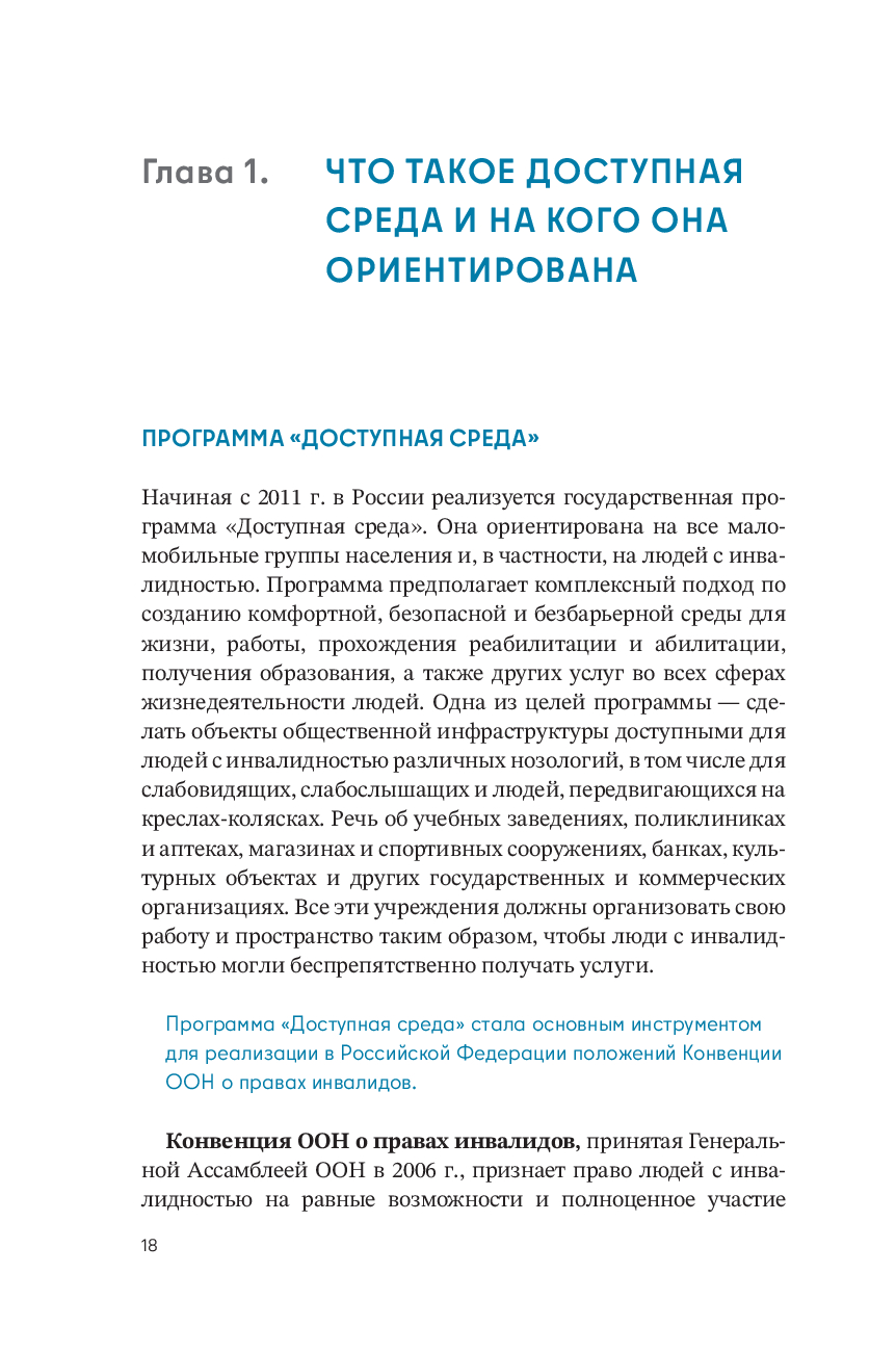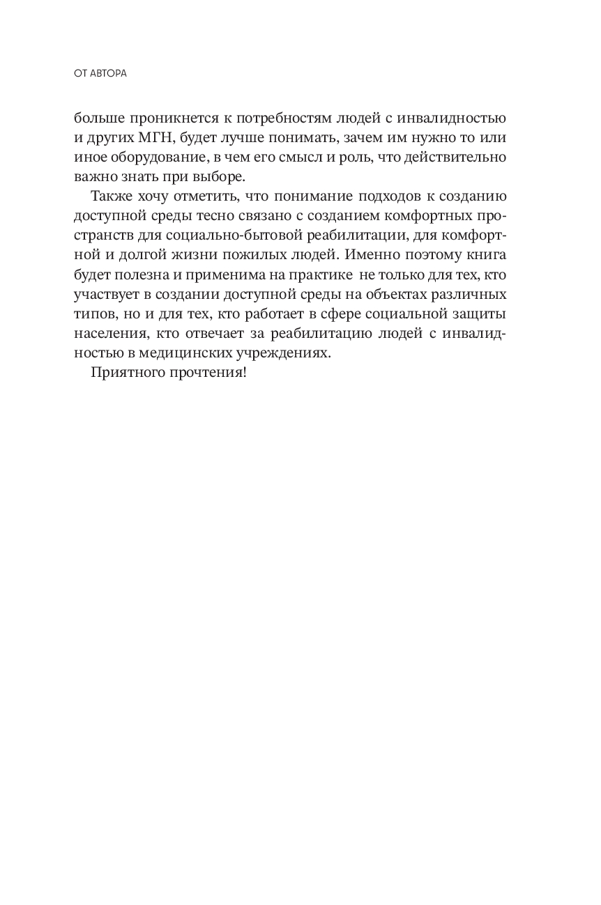 Книга будет полезна тем, кто участвует в создании доступной среды на различных объектах, а также тем, кто работает в сфере социальной защиты населения и отвечает за реабилитацию людей с инвалидностью в медицинских учреждениях.