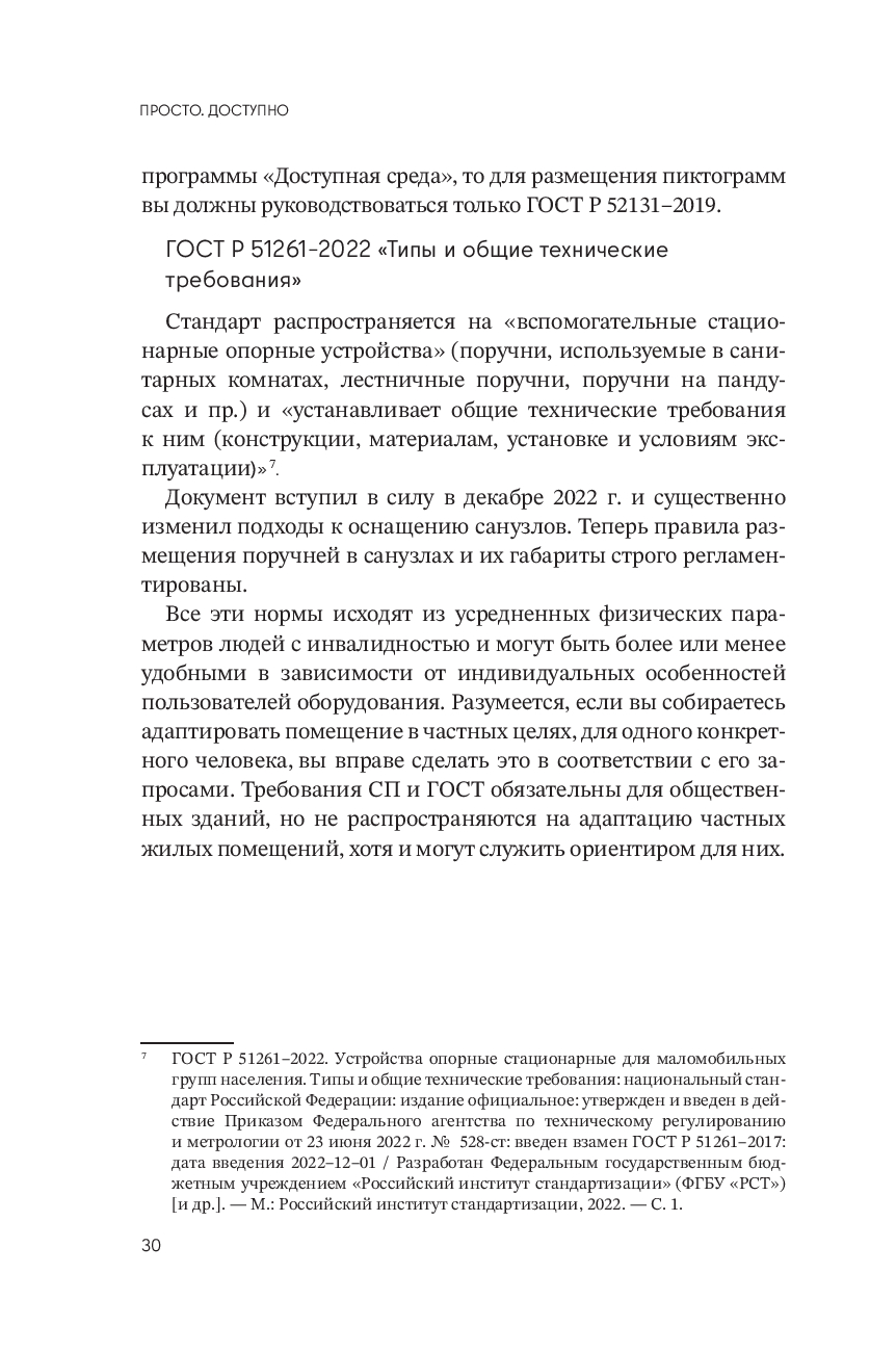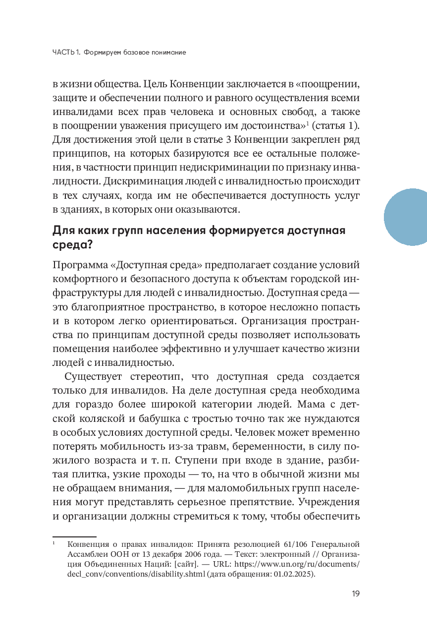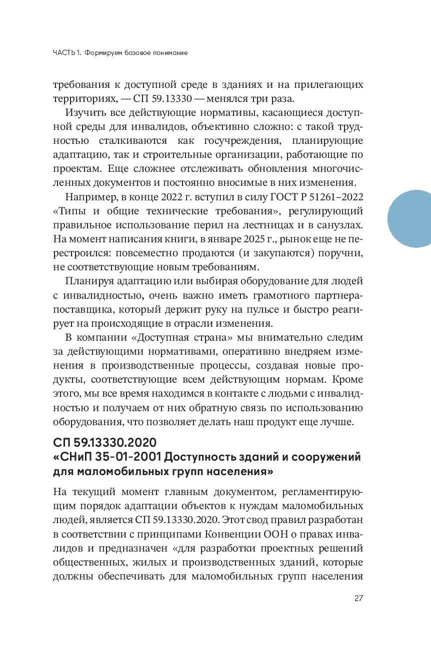Книга будет полезна тем, кто участвует в создании доступной среды на различных объектах, а также тем, кто работает в сфере социальной защиты населения и отвечает за реабилитацию людей с инвалидностью в медицинских учреждениях.