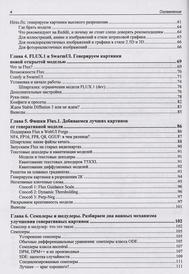 Приведены подробные инструкции по улучшению качества получаемых изображений с использованием reForge, правильному составлению промптов, раскрыты дополнительные возможности WebUI reForge. Описаны принципы работы с механизмами улучшения генеративных картинок: семплерами и шедулерами. Показаны тонкости работы с открытыми моделями FLUX.1 и SwarmUI.