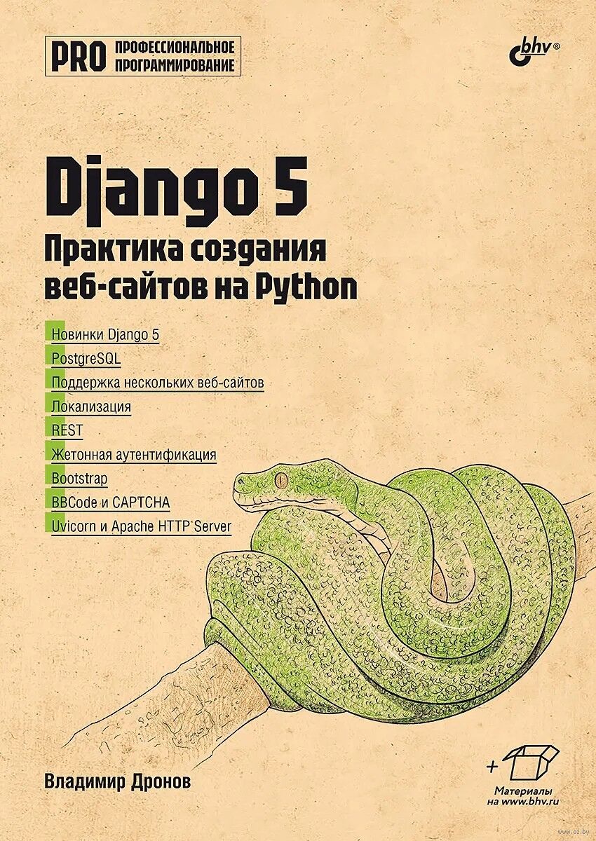 Книга посвящена разработке веб-сайтов на языке Python с применением веб-фреймворка Django 5.1. Представлены новинки Django и дано наиболее полное описание его инструментов и средств: моделей, миграций, контролеров, шаблонов, обработки пользовательского ввода, разграничения доступа, посредников, сигналов, отправки электронной почты, локализации, кеширования, работы с базами данных PostgreSQL, поддержке нескольких веб-сайтов, простых страниц, статичных перенаправлений, жетонной аутентификации и др.