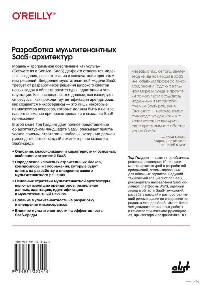Книга посвящена практическим аспектам проектирования и реализации муль-титенантных SaaS-архитектур. Рассматриваются ключевые принципы и модели разработки решений в модели Software as a Service (SaaS), включая стратегии изоляции арендаторов, управление идентификацией, разделение данных, построение микросервисов и подходы к DevOps в условиях мультитенантности.